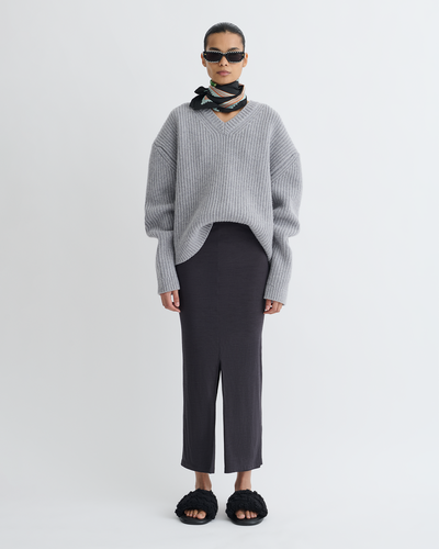 • Rafa - Wool Jersey Midi Skirt - Grey