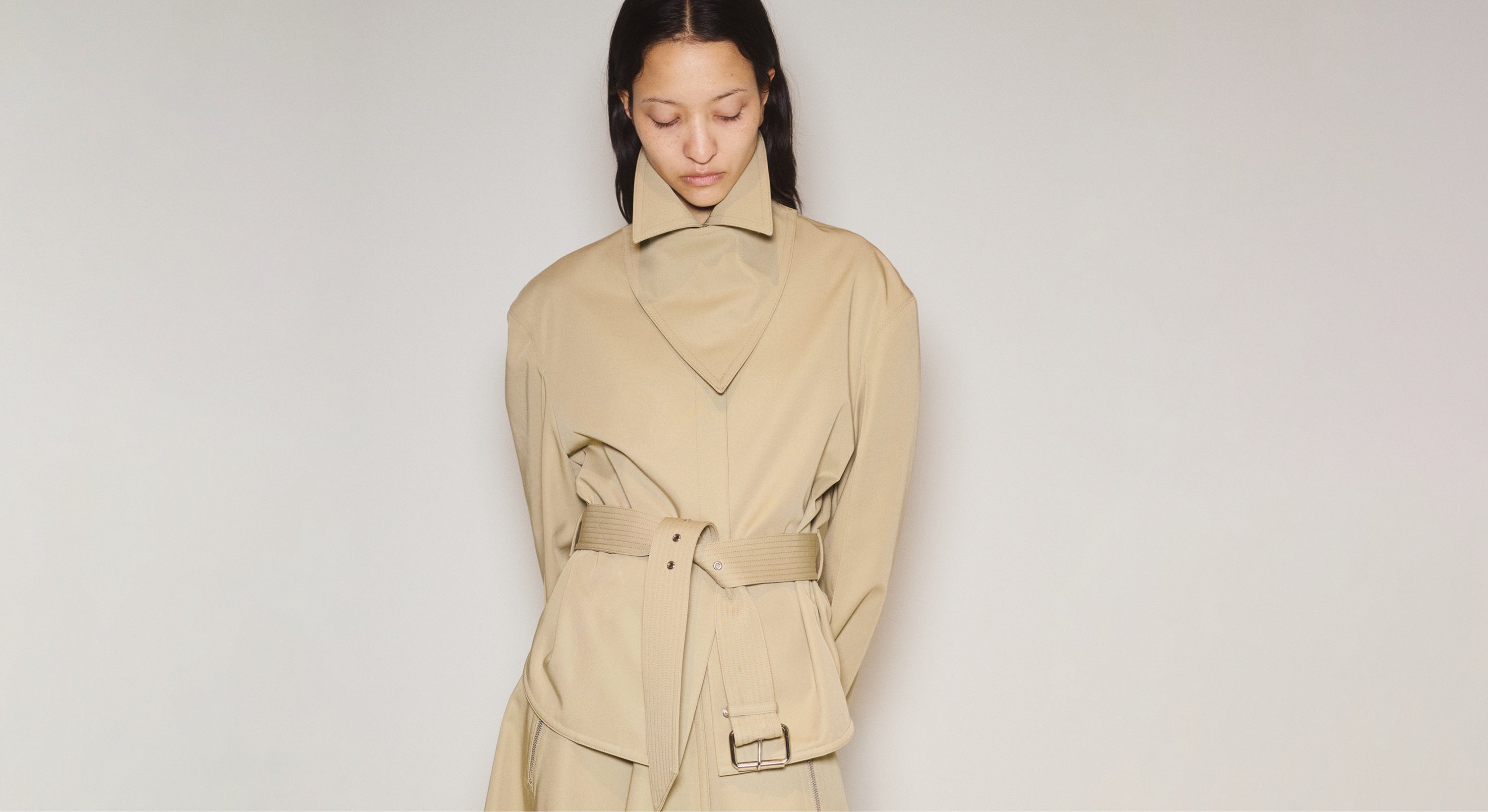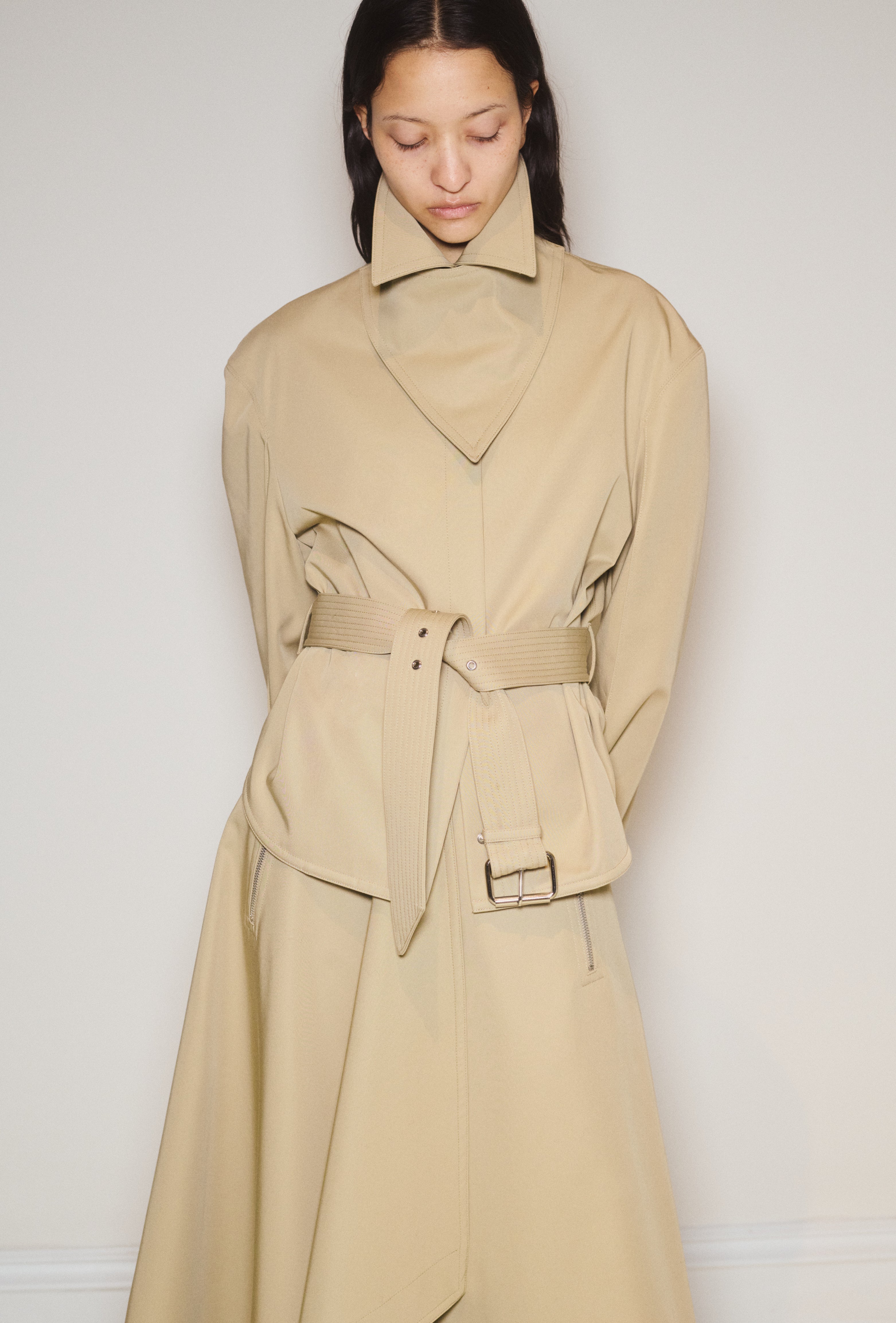 Throughout Fall/Winter 2025, there is a consistent appreciation for the stages of metamorphosis, merging contrasting elements like fluid draping with wrapped dimensions.