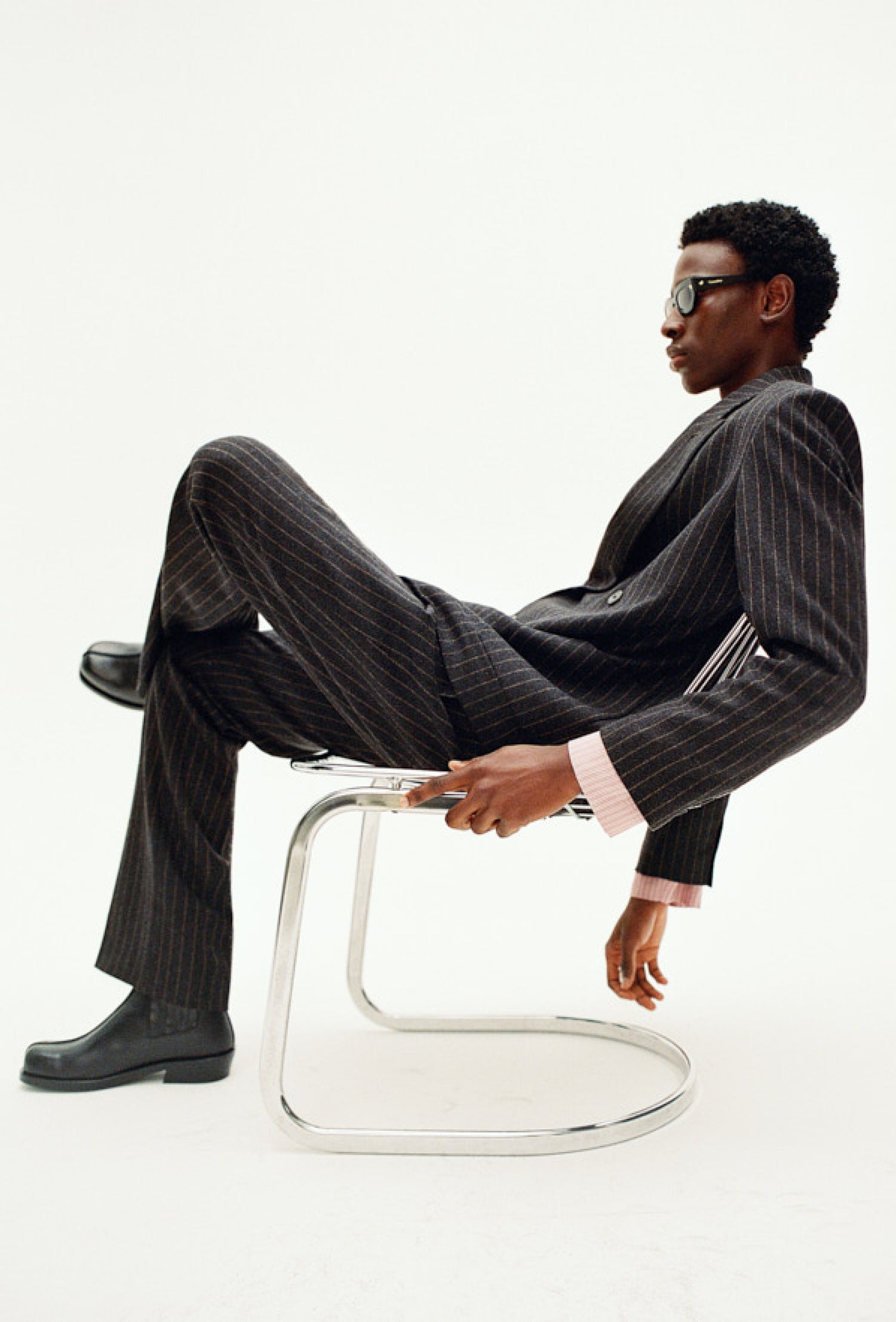 Unexpectedly, paper jersey dominates tailoring, creating uniquely confident silhouettes. Strong shoulders and tailored outerwear highlight traditional forms.