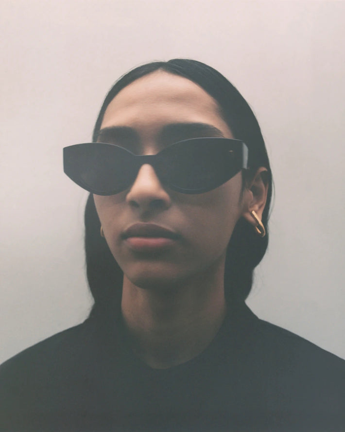“As functional and stylistic accessories, sunglasses lend a true sense of creativity, an exploration of innovative techniques, of contrasting shapes and forms, light and dark, that is at the very heart of Nanushka’s design philosophy.”