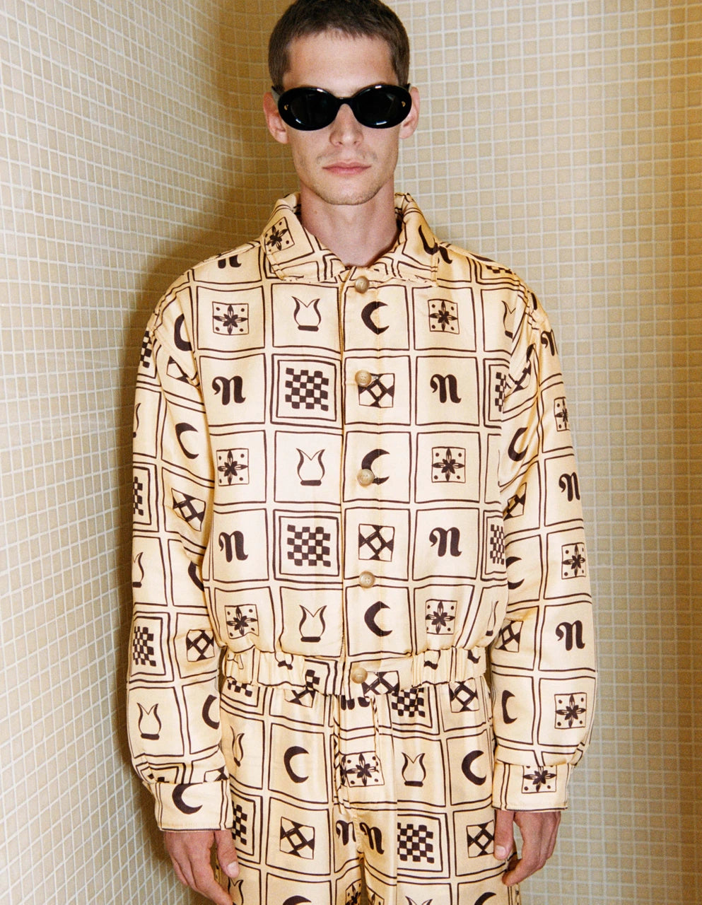 The presence of the atelier is felt in every Nanushka piece within theSpring/Summer 2023 collection. Titled Spirit and Matter, the newseason illustrates the physical process of craft and design; handcrafted elements co-exist with technical fabrics across the collection, exploring the interconnectivity of beauty and function. Nanushka’s intuitive and organic design approach leaves room for unintentional results such as distorted prints caused by draping, and new silhouettes created by versatile tying techniques.