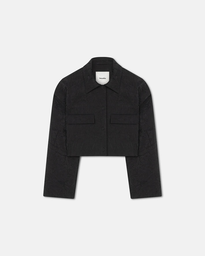 Shop nowWe always focus on fabric with each garment we make. The Coreen shirt is cut from sculpted glass poplin, a subtly textured fabric that elevates the minimalist shape. It has a cropped silhouette and comes in classic black.