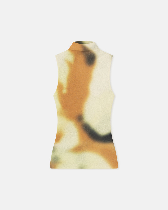 Shop nowMade from our signature upcycled mesh-jersey fabric, the Annyka top is decorated with our smudged graffiti print – the neutral and orange tones are easy to incorporate into your existing wardrobe.