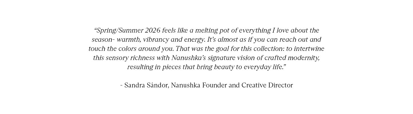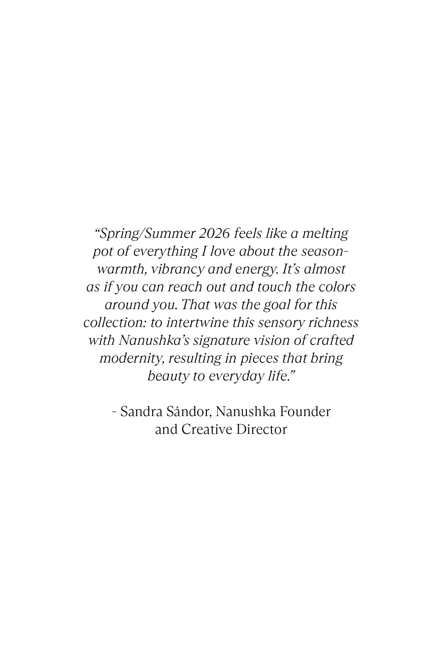 Nanushka presents its Spring/Summer 2026 collection, The Weave, a refined tribute to crafted modernity. Inspired by Cuban-born designer Clara Porset, renowned for her work on the iconic Latin American Butaque chair and her ability to merge historic craftsmanship with modern form, the collection reflects her pioneering spirit and ability to reimagine everyday objects with meaning. Rooted in this ethos, the collection reflects Nanushka’s philosophy of finding art, beauty, and function in the everyday, with pieces designed for the energy and warmth of summer.