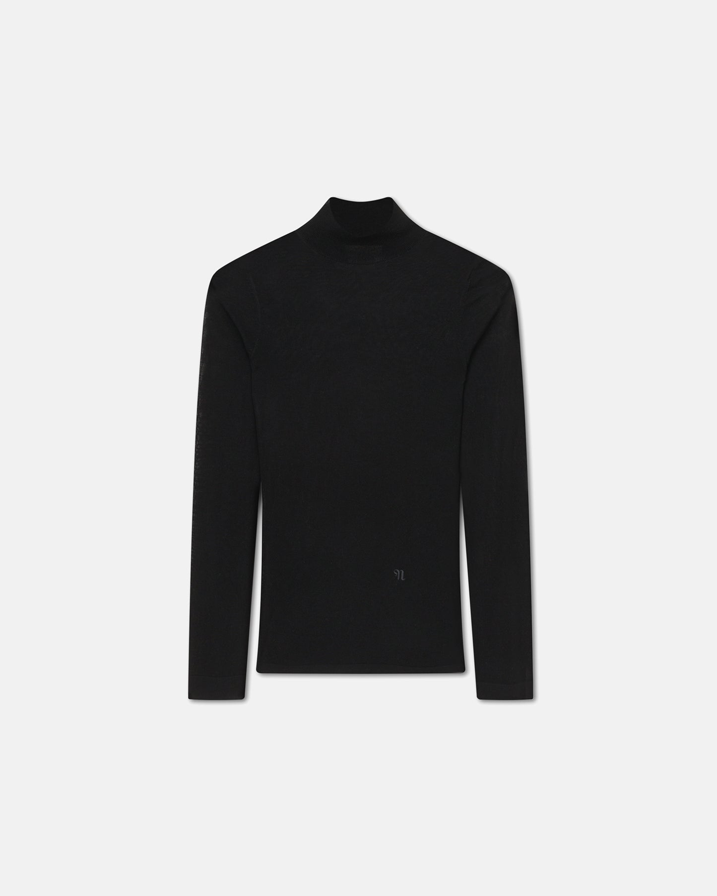 The Harri is a mock neck top with a streamlined fit for easy layering. Made from superfine merino in black, it is classic yet versatile.