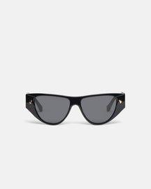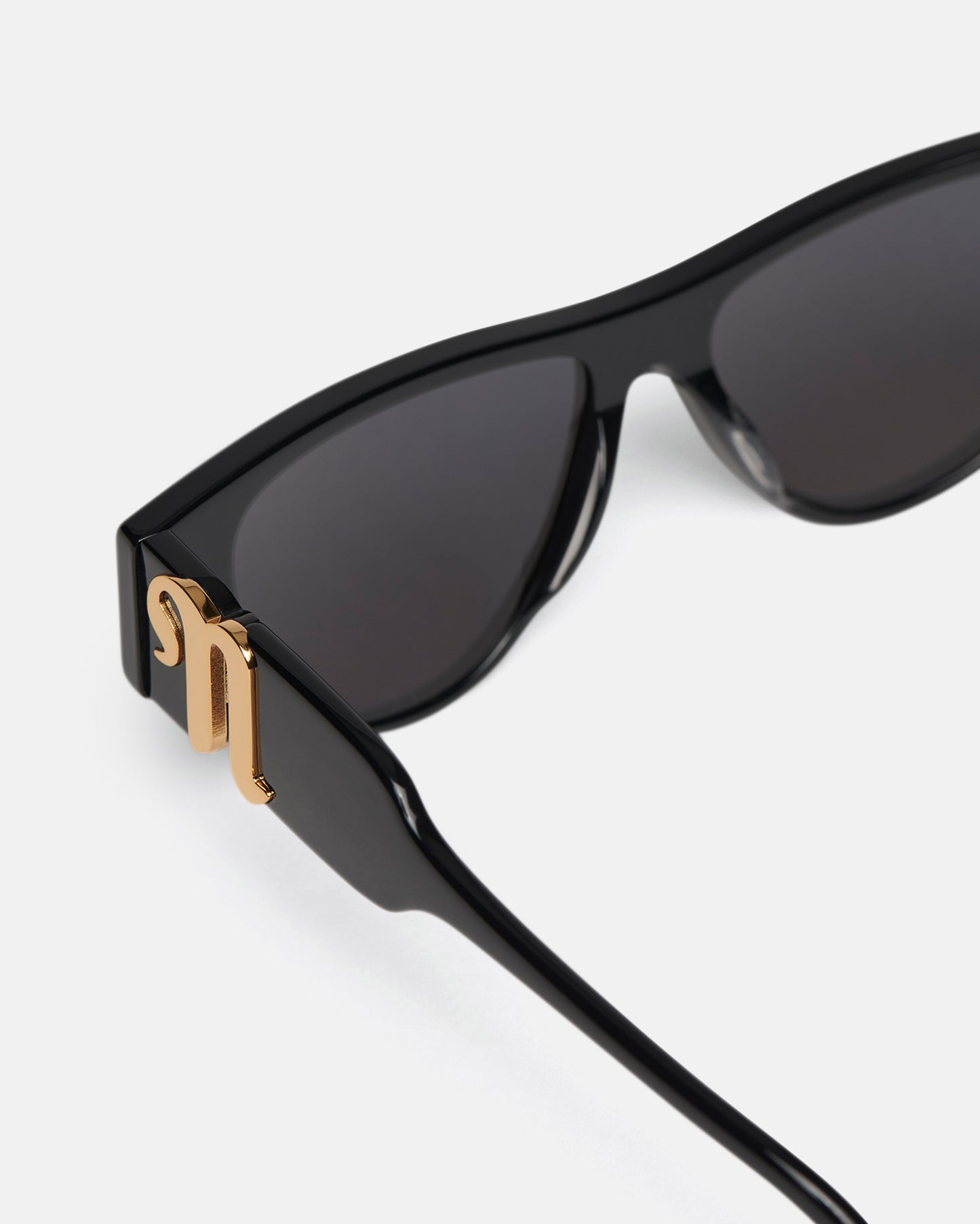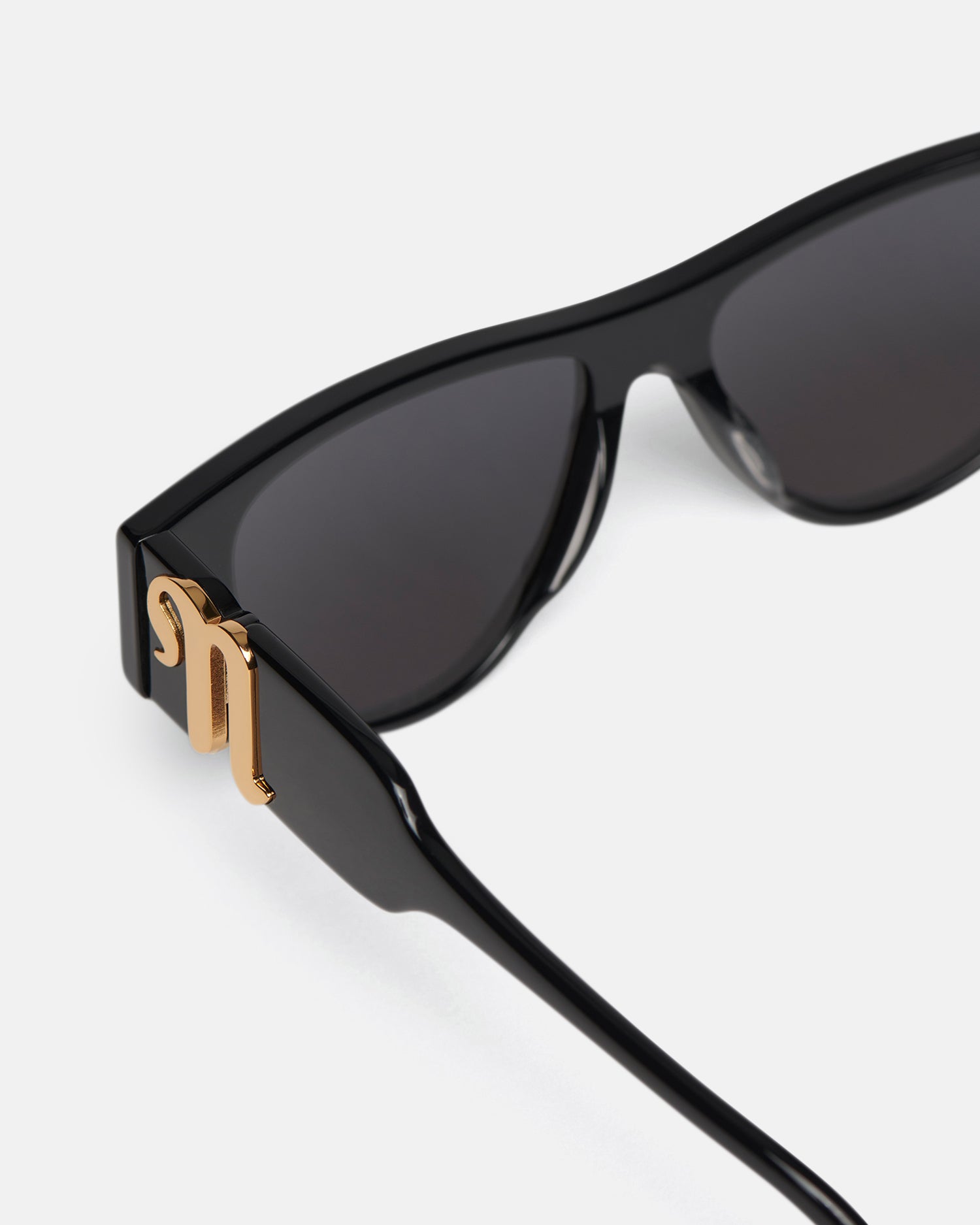 The Emme sunglasses are defined by angular cat-eye frames accented with signature gold ‘N’ motifs at the temples. In a long-standing commitment to responsible production, they are made from black bio-based plastic and housed in an upcycled alt-leather pouch.