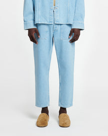 The Jasper jeans have a relaxed, workwear-inspired silhouette. Responsibly crafted from eco light wash denim, they feature utilitarian patch pockets and are cut to a tapered straight-leg fit that’s slightly cropped at the ankle.