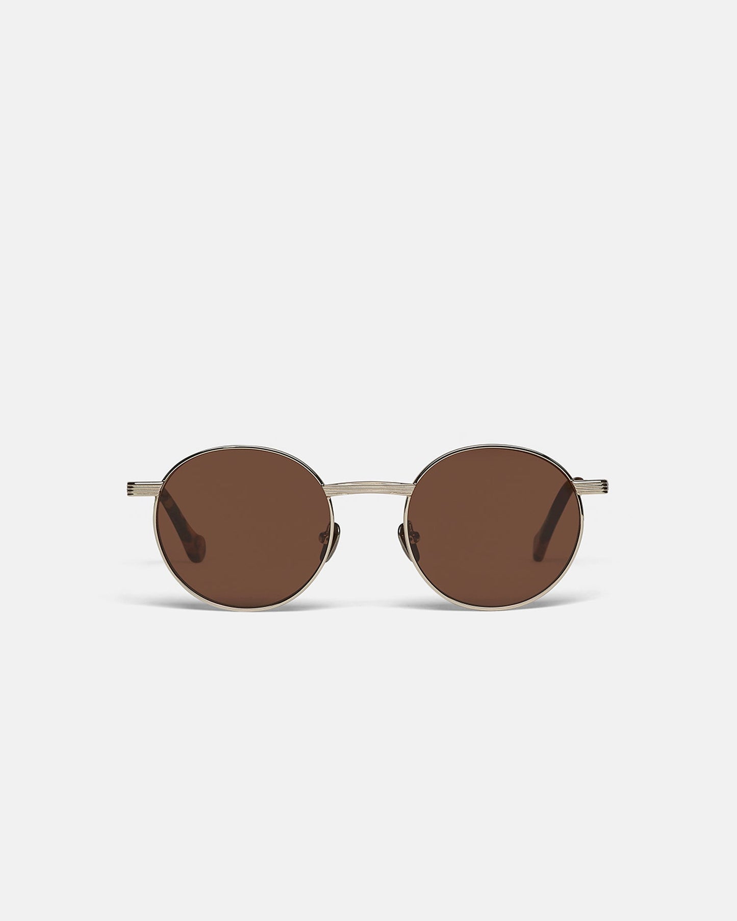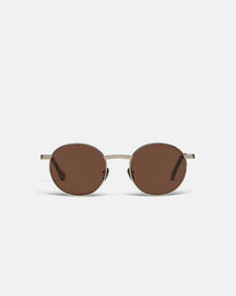 The Pola sunglasses are reminiscent of styles worn in the ‘70s. They have been made from gold-tone stainless steel and have oversized round frames balanced by thin arms. They come housed in a signature alt-leather pouch upcycled from offcuts.