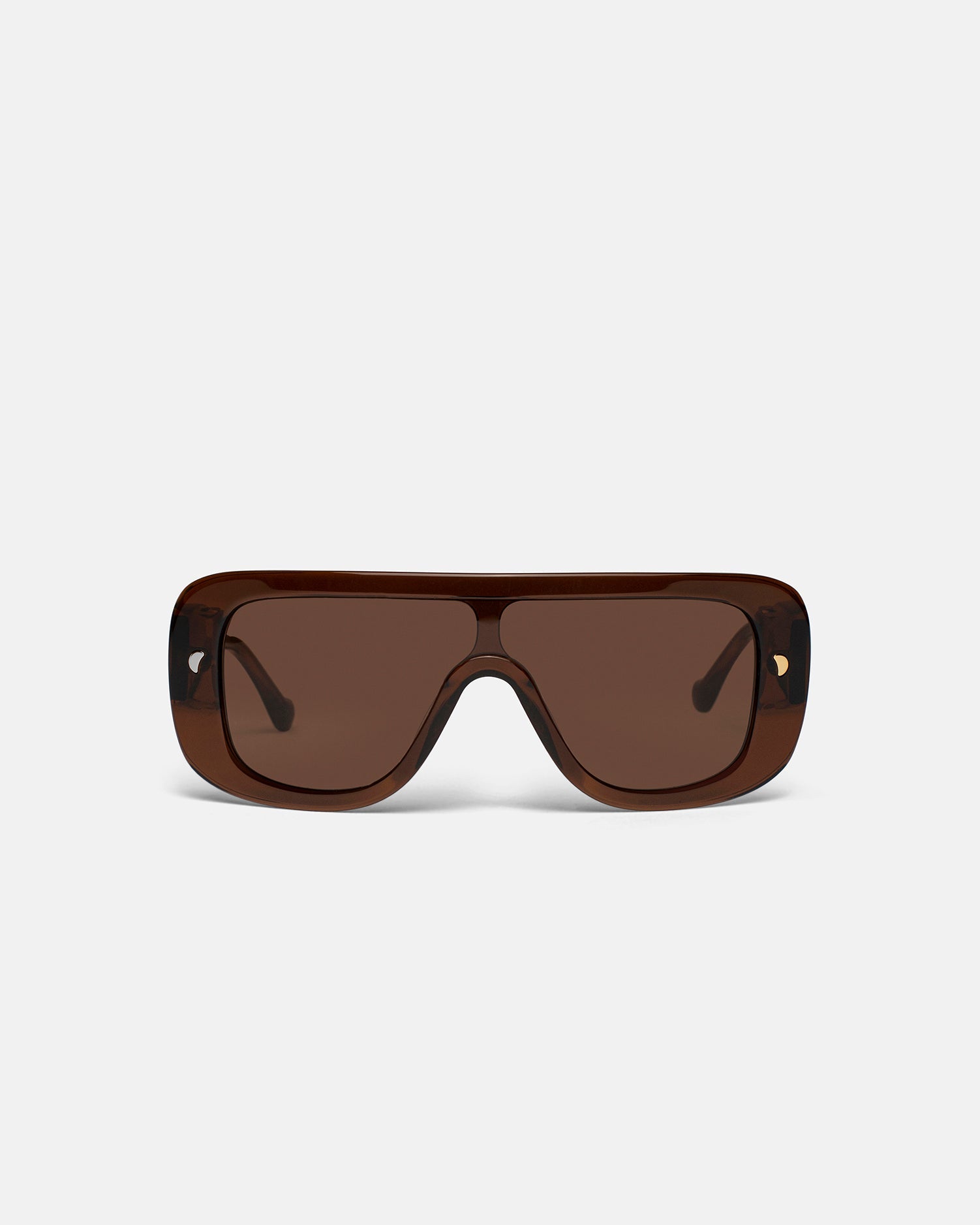 Nanushka Eyewear continues our commitment to experimentation in materials and design. Made from bio-based plastic, the Monsino sunglasses have a distinctive oversized square-frame silhouette punctuated with gold-tone hardware at each temple. They come in a protective pouch - crafted from deadstock supplies of our signature vegan leather - complete with a recycled cleaning cloth.