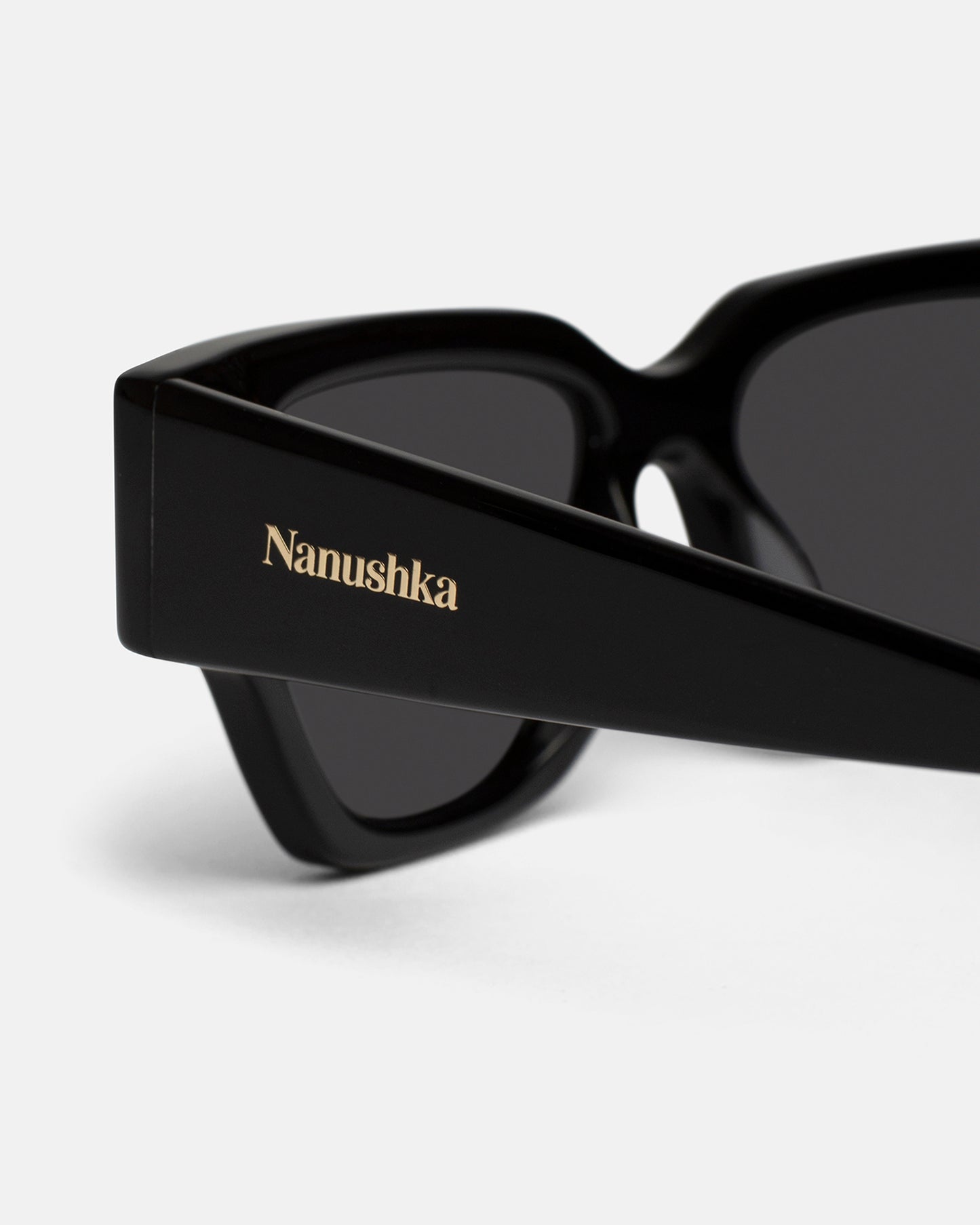 The Sazzo sunglasses have a particularly angular D-frame silhouette accentuated by gold-tone hardware at each temple. Made from bio-based materials and presented in an upcycled vegan leather pouch, they continue our commitment to responsible design.