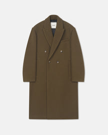 The Zenin coat is relaxed yet refined. Made from soft and warm felted wool, it has a sharp double-breasted silhouette offset by dropped shoulder seams and rounded sleeves. Please note the brooch is not included.