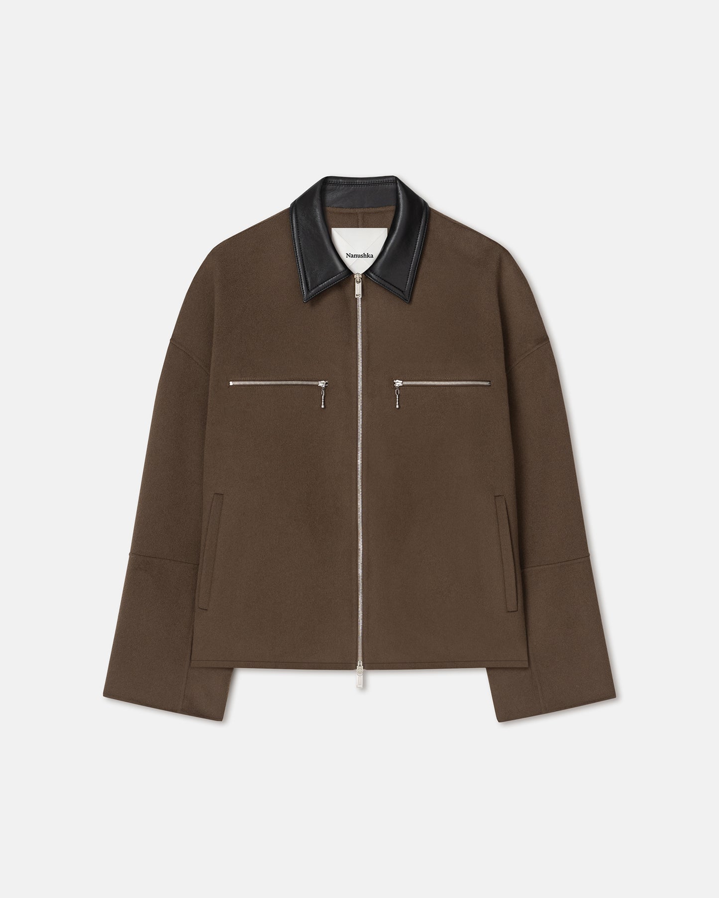 A fascination with the enduring cool of the Biker jacket informs our latest collection, explored through unexpected fabrications and subtle detailing. The Malachi jacket is made from super-soft clay-toned double wool with a contrasting black regenerated leather collar and zip-fastening pockets.