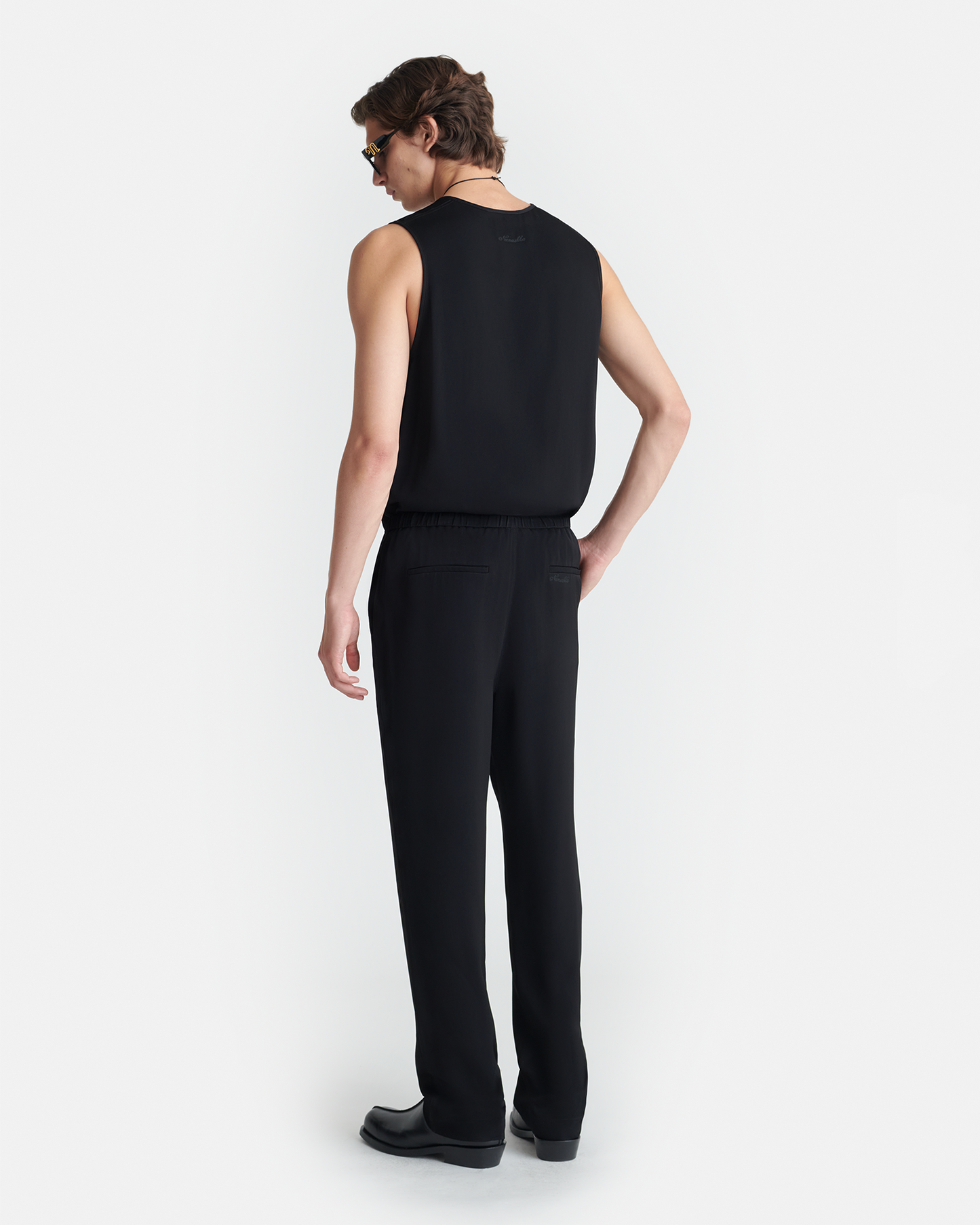 A consistent consideration of fabric is at the heart of the Nanushka design philosophy. The Demis pants are made from whisper-weight georgette to enhance the fluid wide-leg silhouette. In classic black, they are detailed with a drawstring waist for added ease.