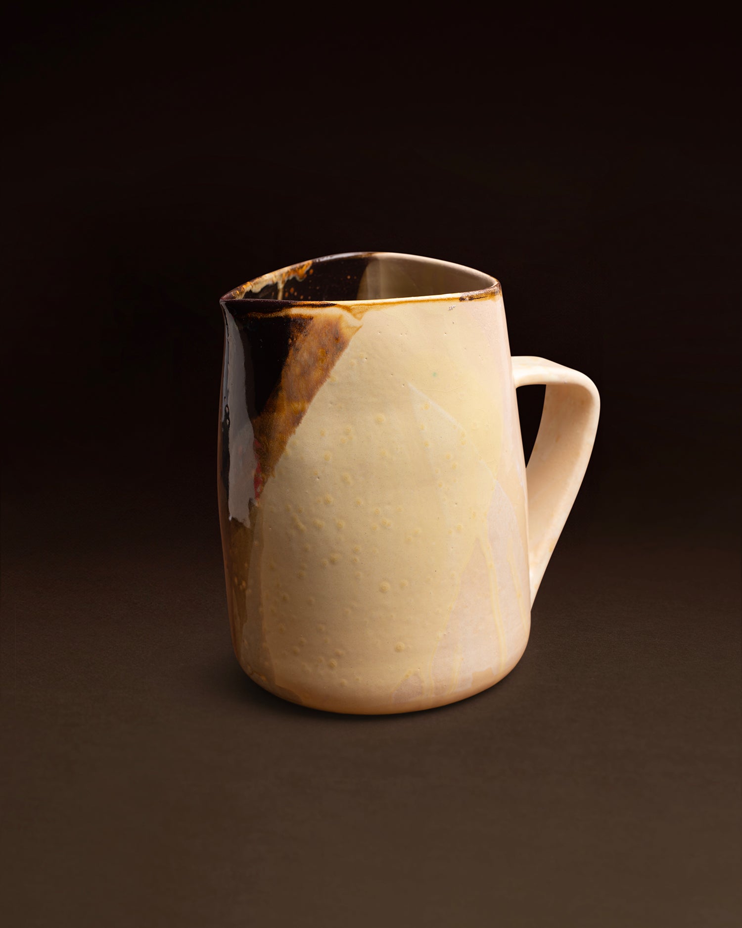 A practical yet elegant piece, the Water Jug complements your table setting and hydration ritual. Handmade in soft gradients of moonbeam, dark brown, and off-white, and marked with the Nanushka Café tile stamp.