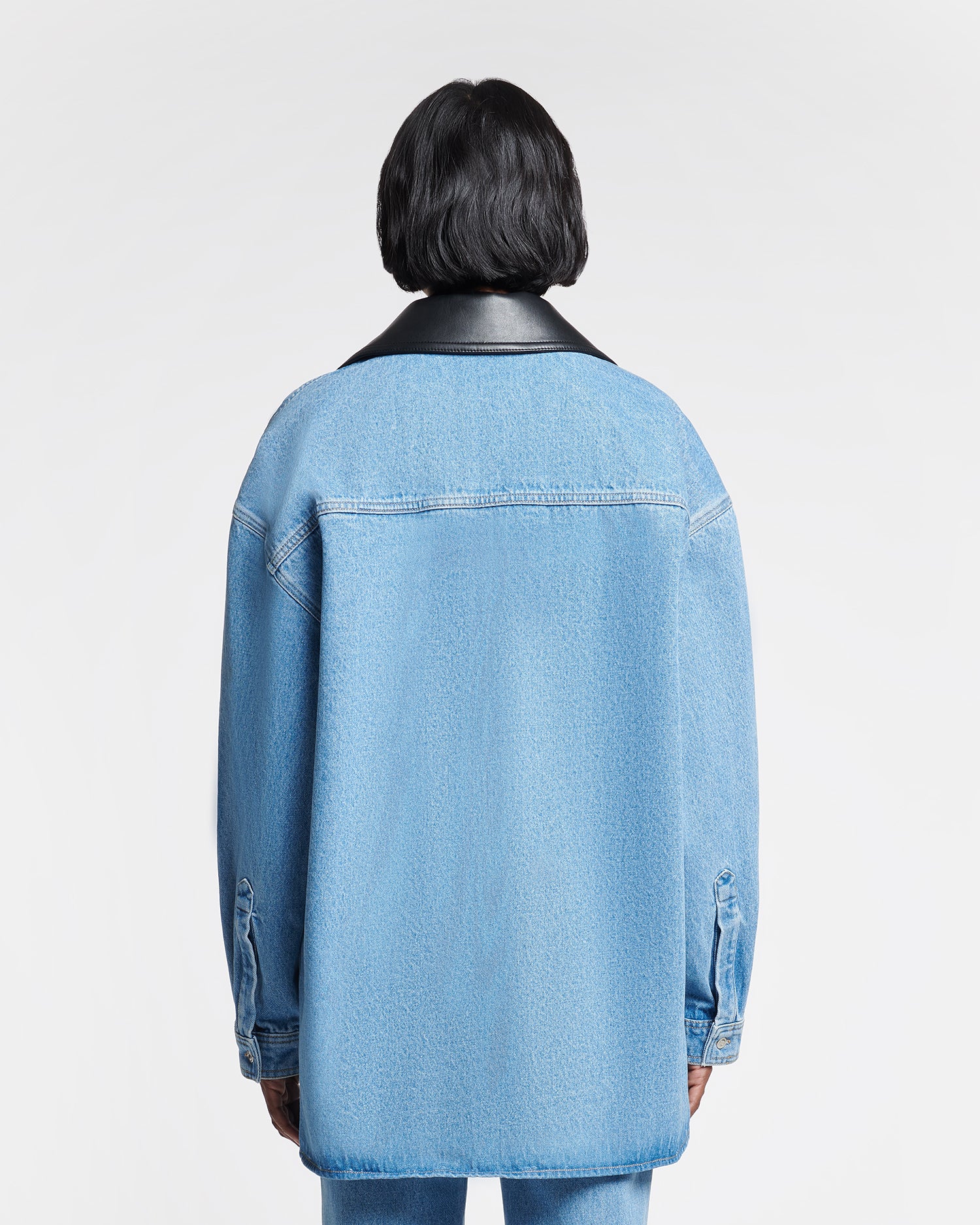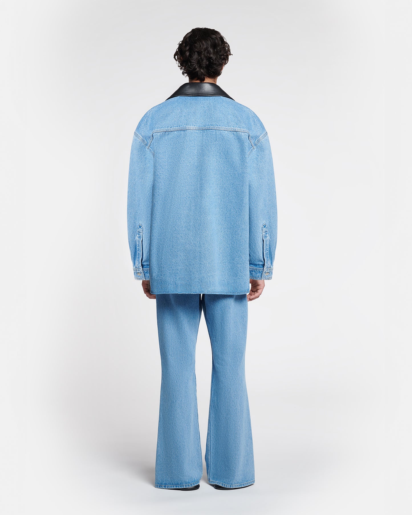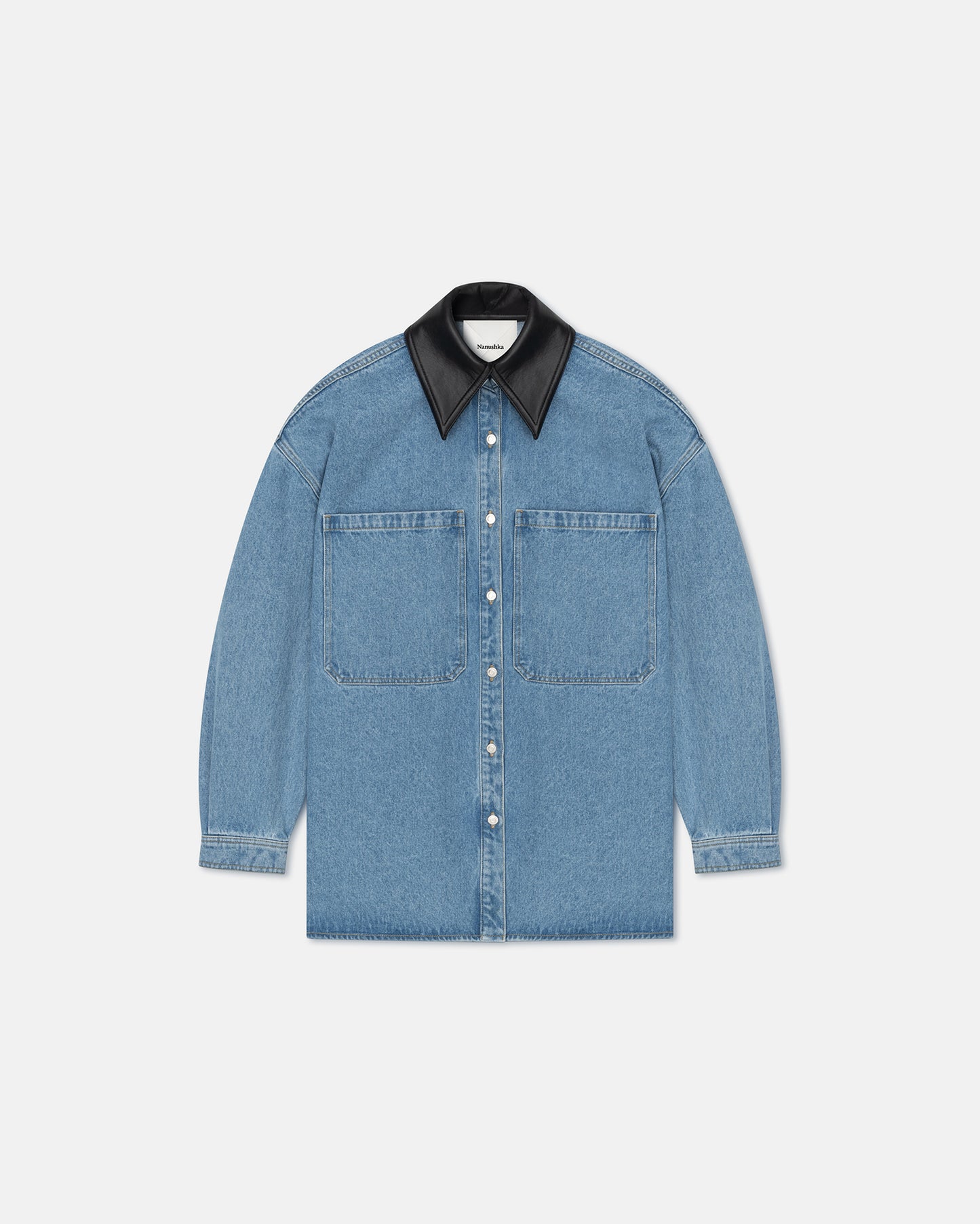 An elevated take on 90s minimalist staple, the Beaux shirt is cut from organic cotton denim and finished with a regenerated leather collar. The boxy silhouette is punctuated by outsized pockets on the chest.