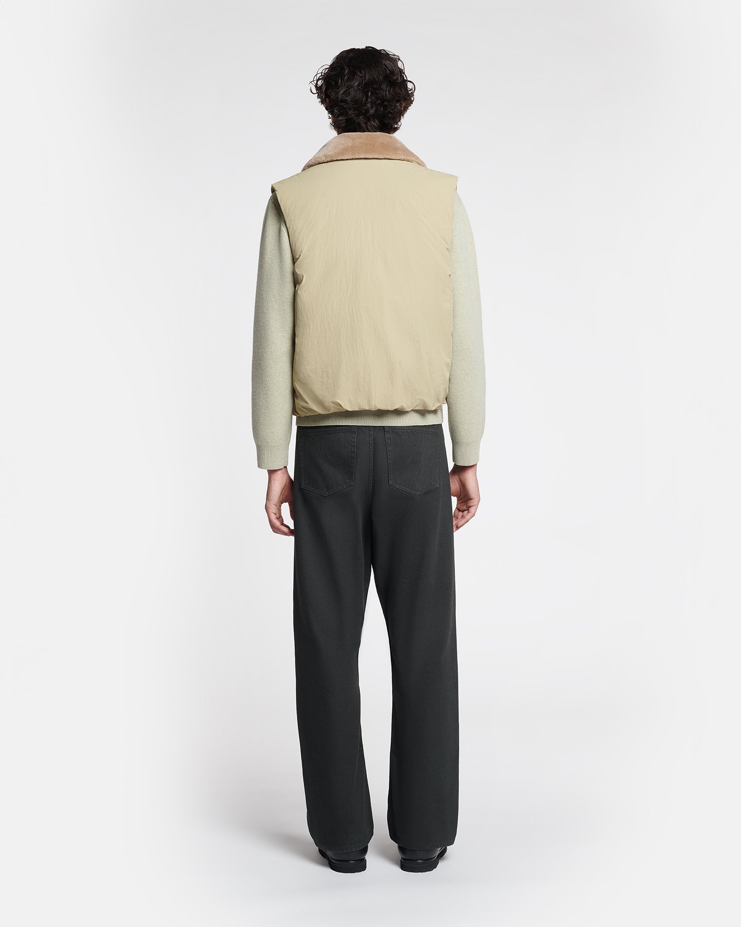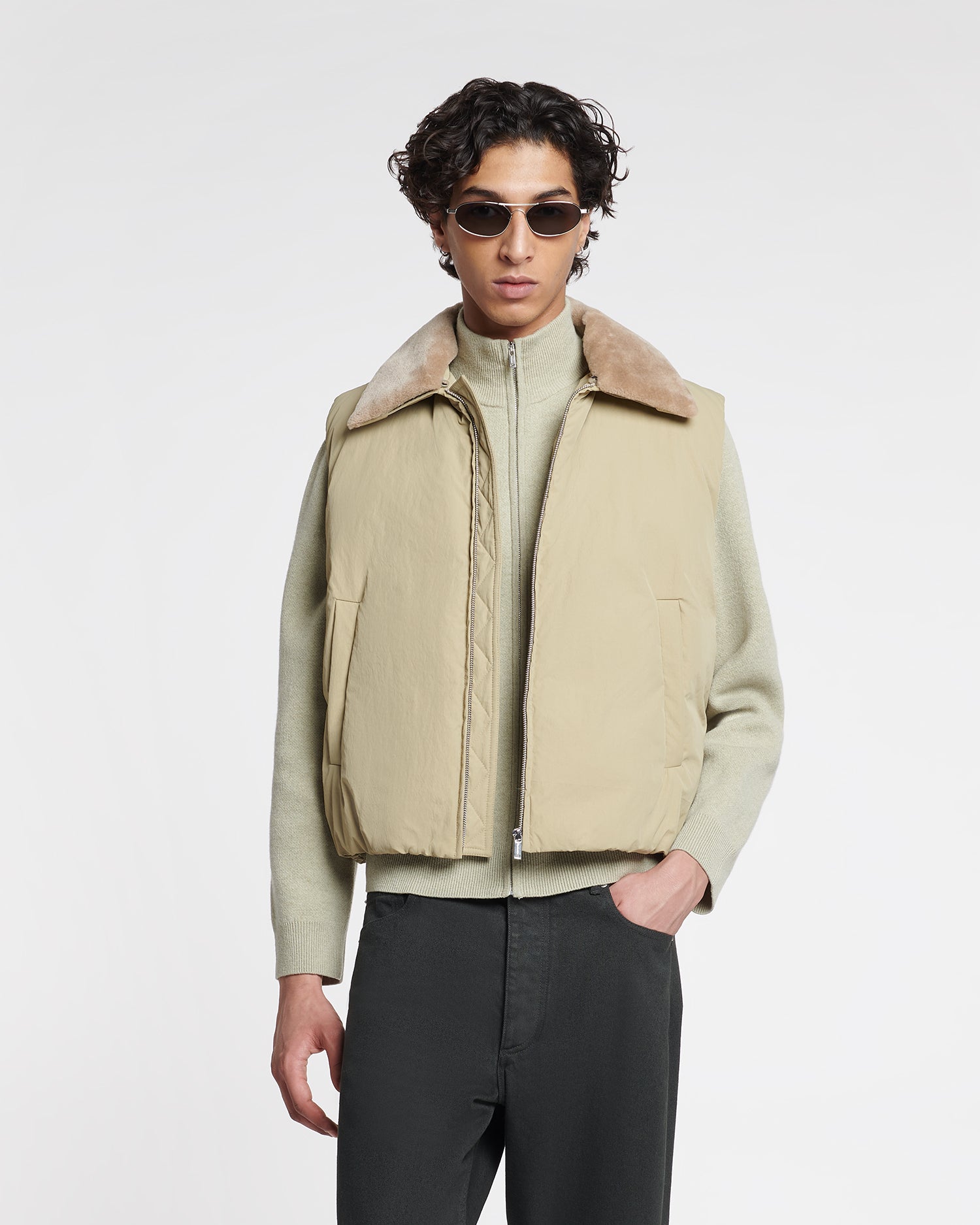 Regular fit, true to size.- Tech nylon vest with faux fur