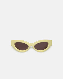 The Trysta sunglasses are inspired by 90s sporting styles. Crafted from bio-based plastic, they have a distinctive design that wraps around the face. They are minimally detailed to keep focus on the statement shape.