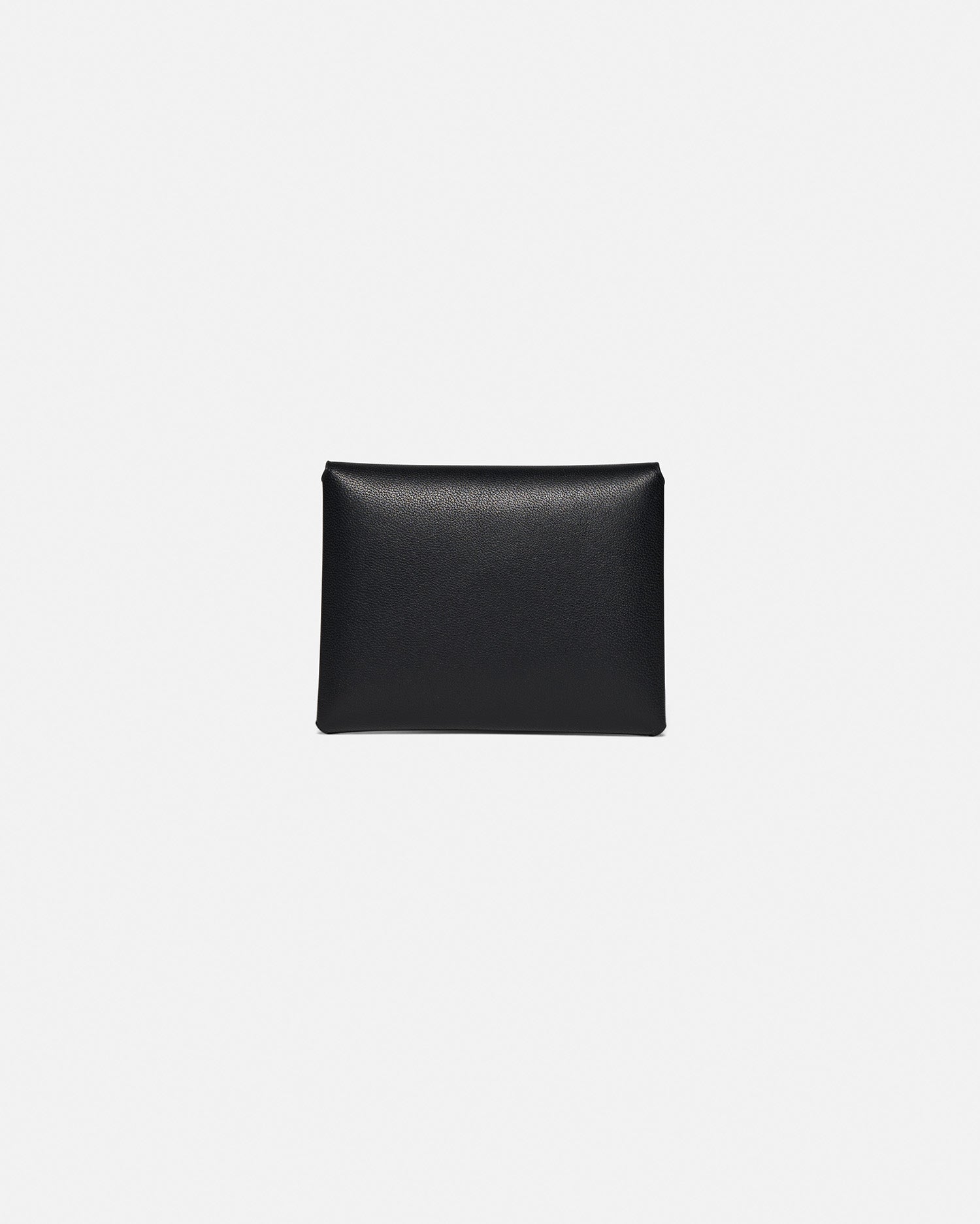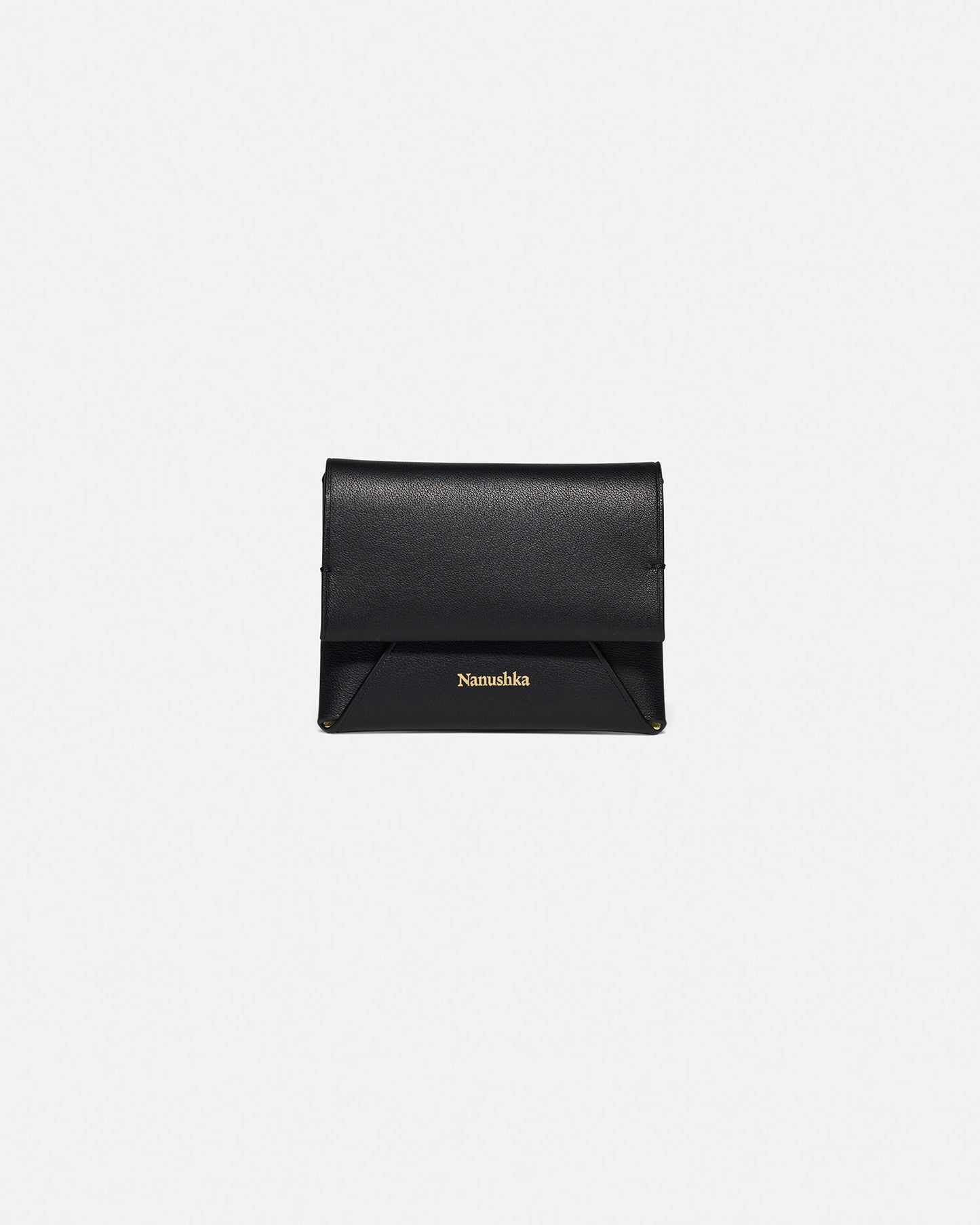 Designed in Nanushka’s signature Origami style, the folded cardholder folds flat and is crafted from structured leather. The black exterior is contrasted by a signature moonbeam interior, complete with a blind-debossed Nanushka wordmark and brushed gold hardware.