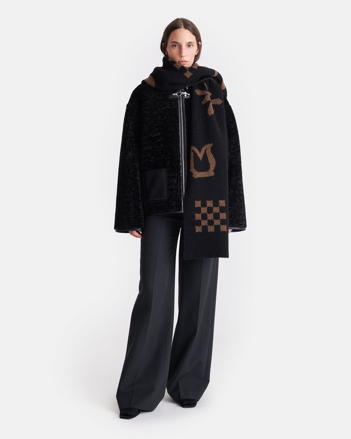 The Lance scarf is knitted from a blend with plenty of alpaca wool, which gives it a sumptuously soft and tactile feel. The black and brown palette makes it a timeless cold-weather accessory.