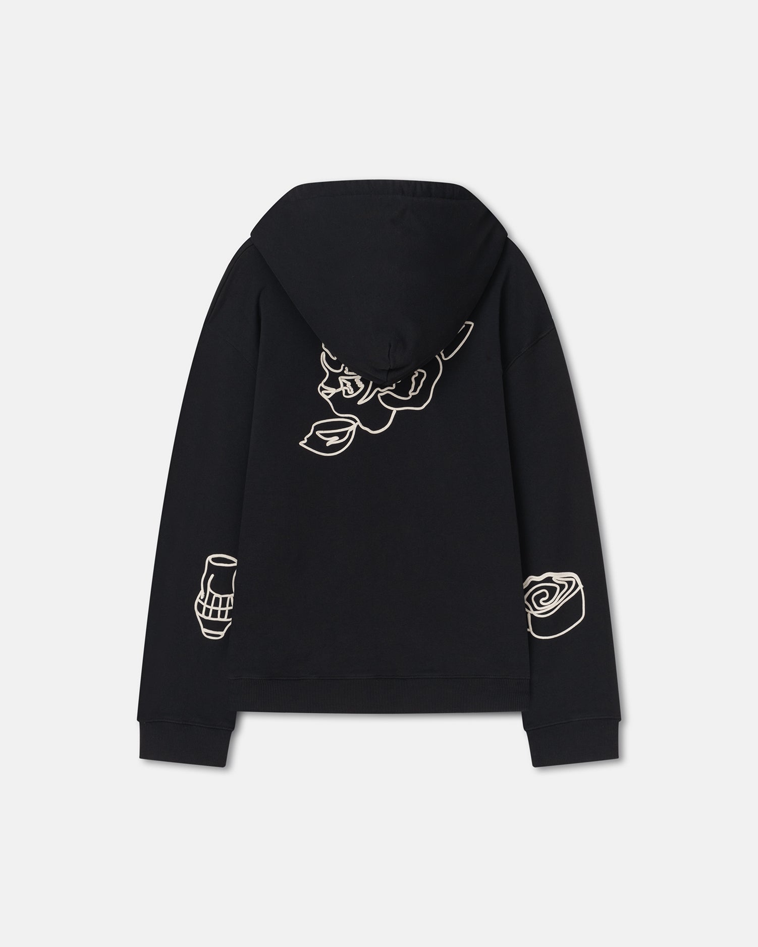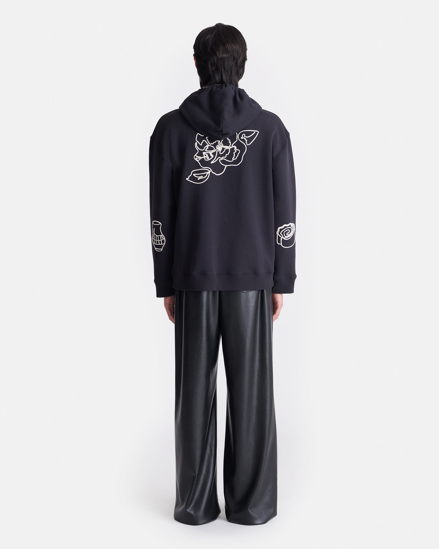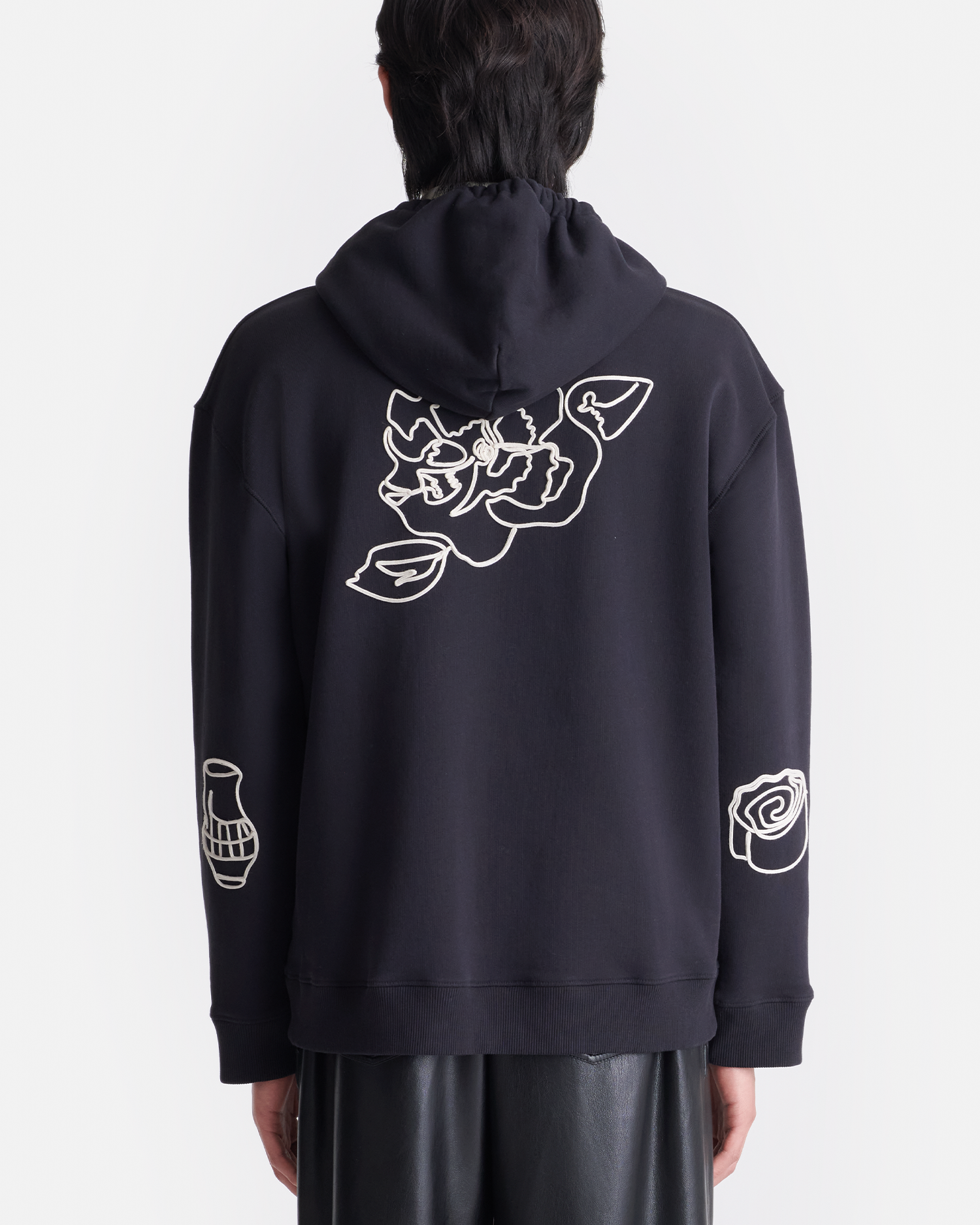 The Ever hoodie draws inspiration from vintage '90s fleeces. The black Ever hoodie is made from super-soft organic cotton and finished simply with our ‘N’ motif embroidered at the chest and floral motifs on the back.
