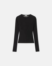 The Lymee top is crafted from our recycled mesh jersey. A versatile wardrobe staple, it has a streamlined fit and comes in classic black.