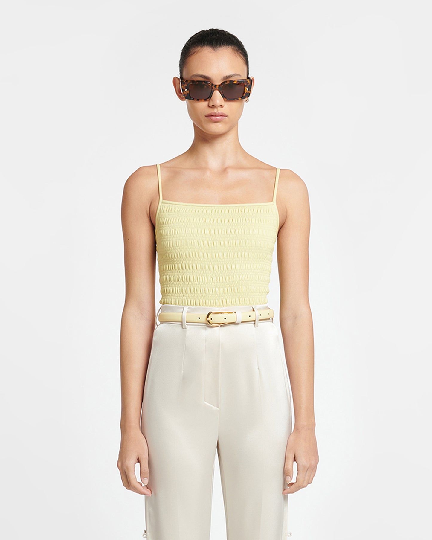 The Selene belt is crafted from supple alt-leather and fastens with a sleek rounded buckle. It is designed to loop through your favourite pair of tailored pants or over a boxy blazer.