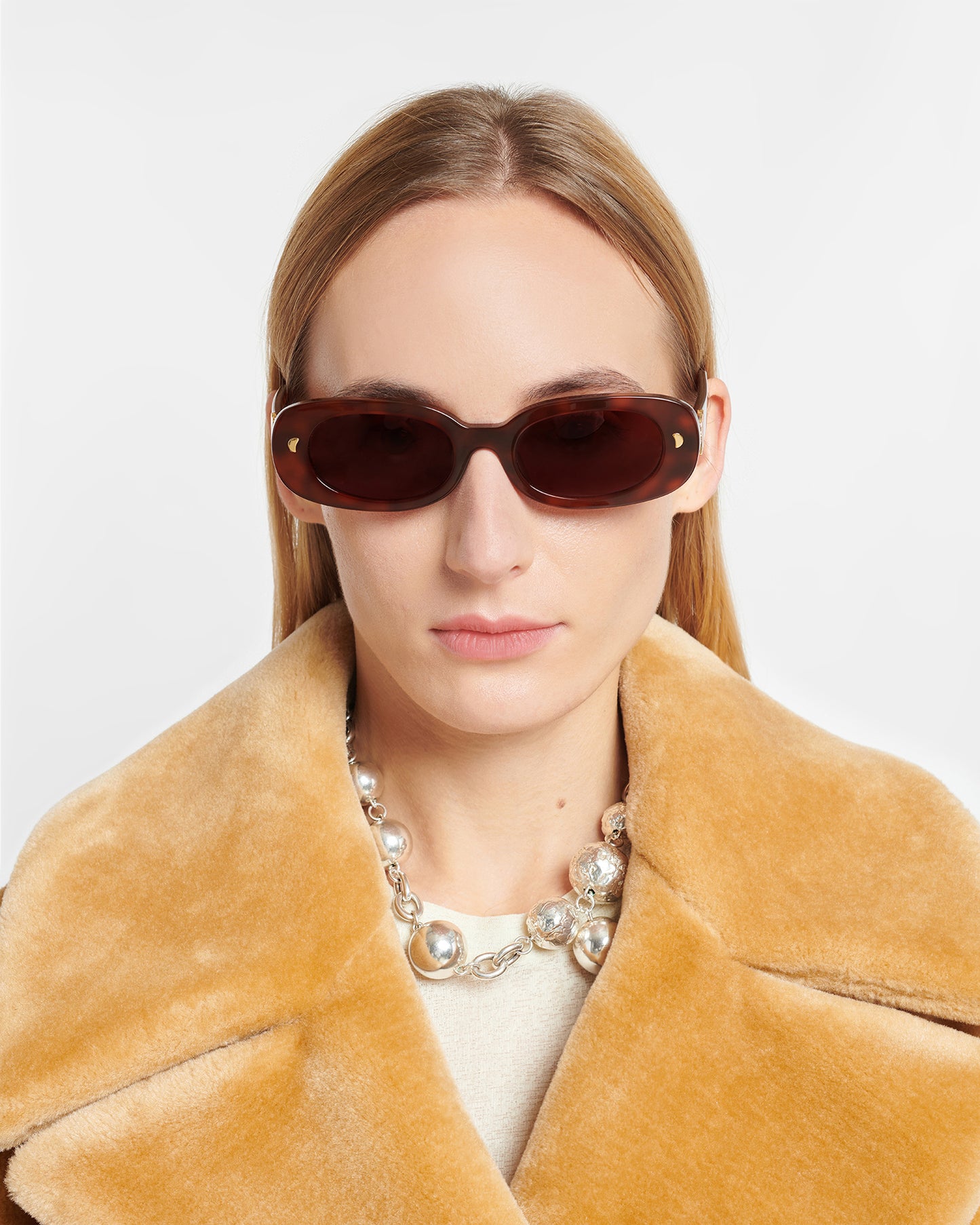 The Aliza sunglasses draw inspiration from vintage eyewear, with '60s inspired oval frames. They are made from bio-based materials and feature our gold-tone ‘N’ monogram on the arms.