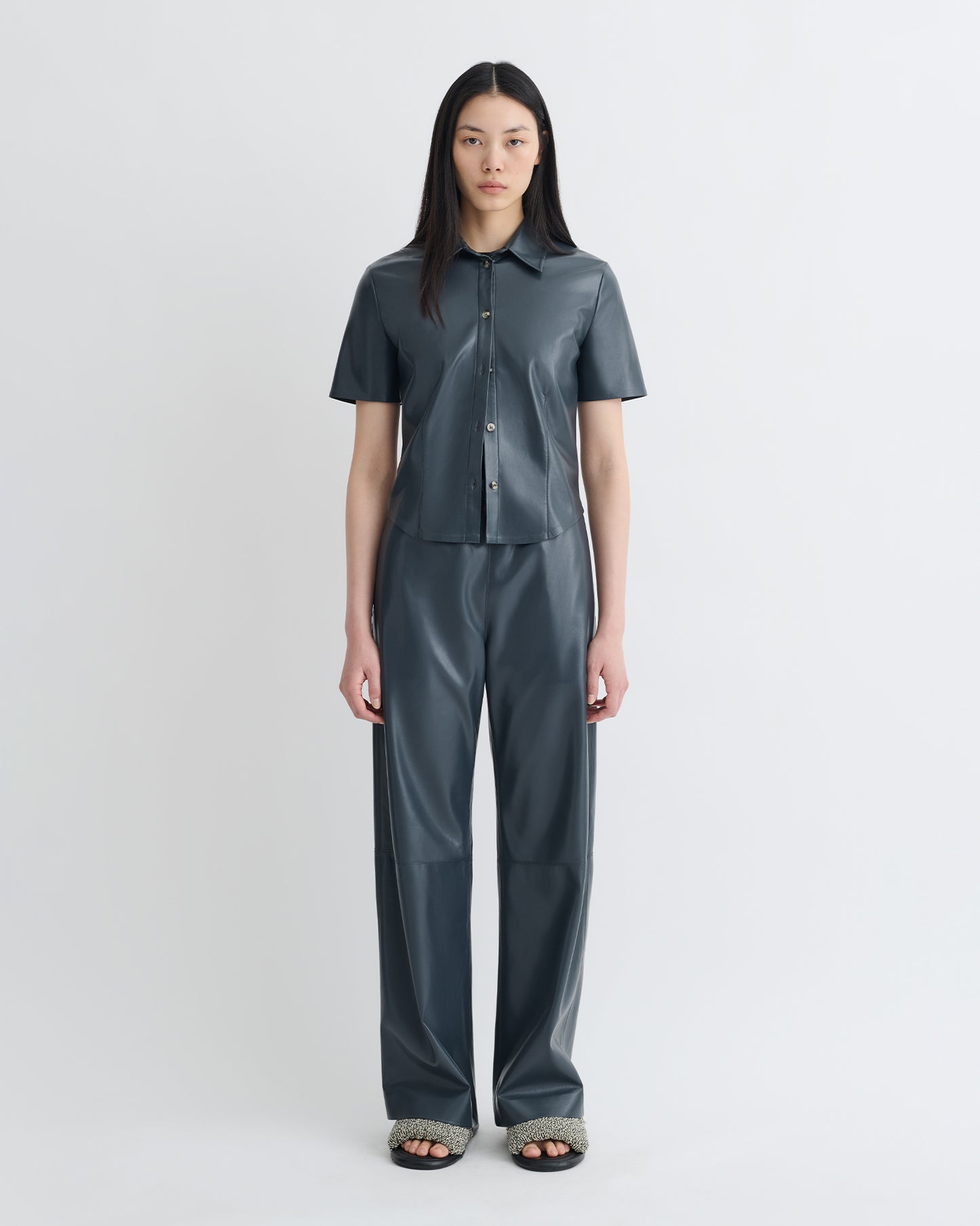 The Clare shirt exemplifies understated elegance. It’s made from our signature Okobor™ in steel blue for a slim-fitting, short-sleeved silhouette.