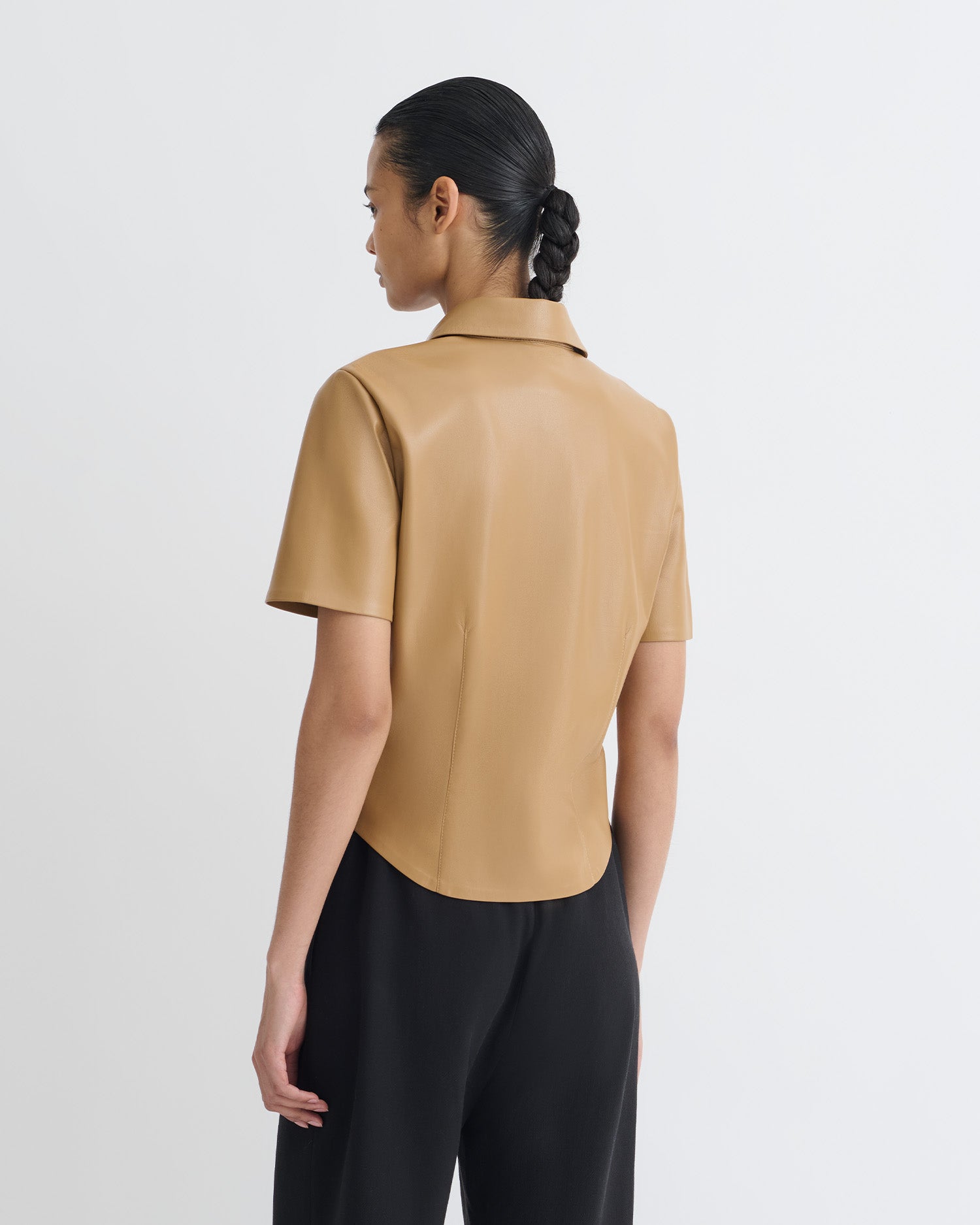 The Clare shirt exemplifies understated elegance. It’s made from our signature Okobor™ in a rich oak tone for a slim-fitting, short-sleeved silhouette.