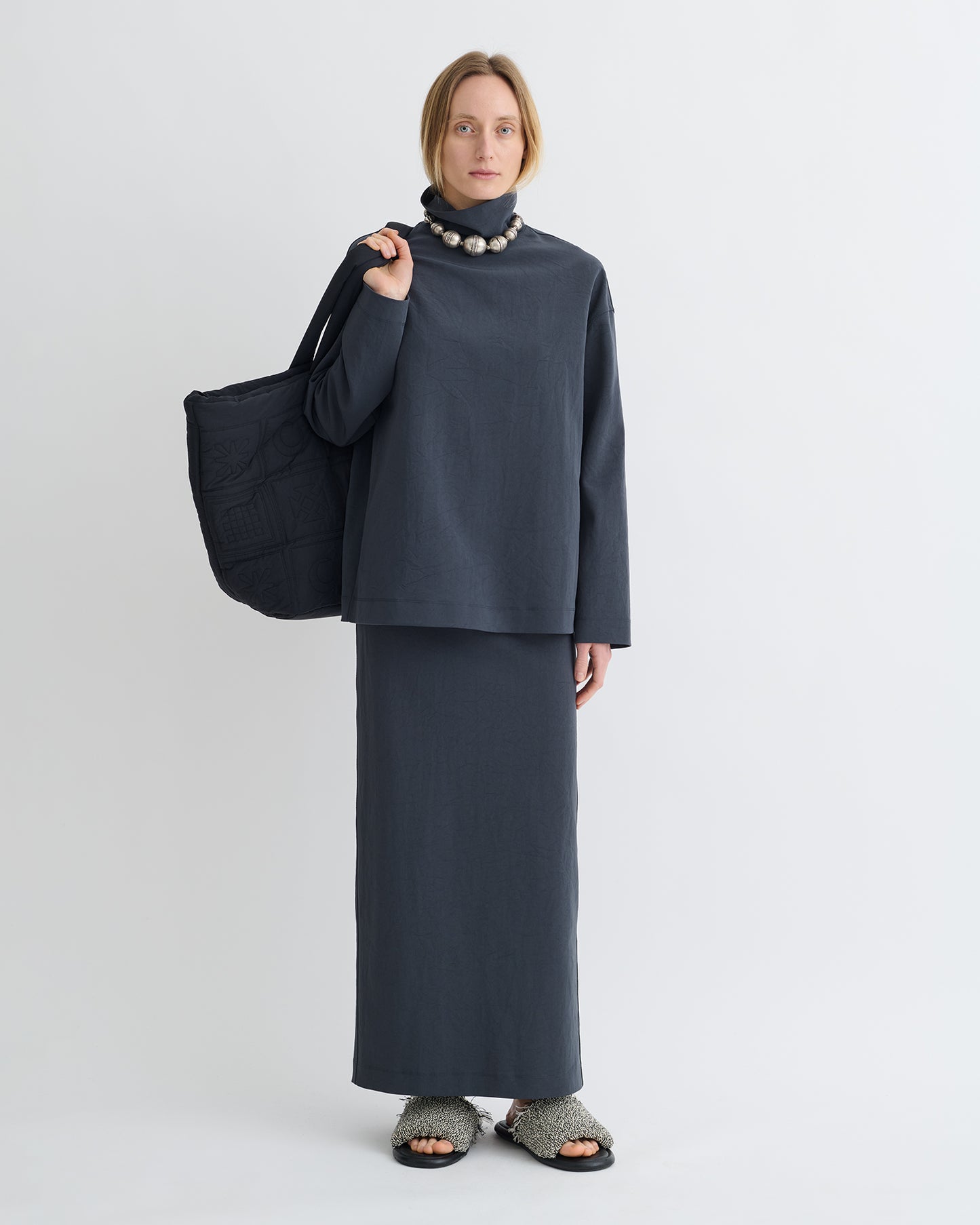 The Sitara top is made for understated sophistication. Cut from luxuriously lightweight paper jersey, it drapes fluidly from a chic turtleneck.