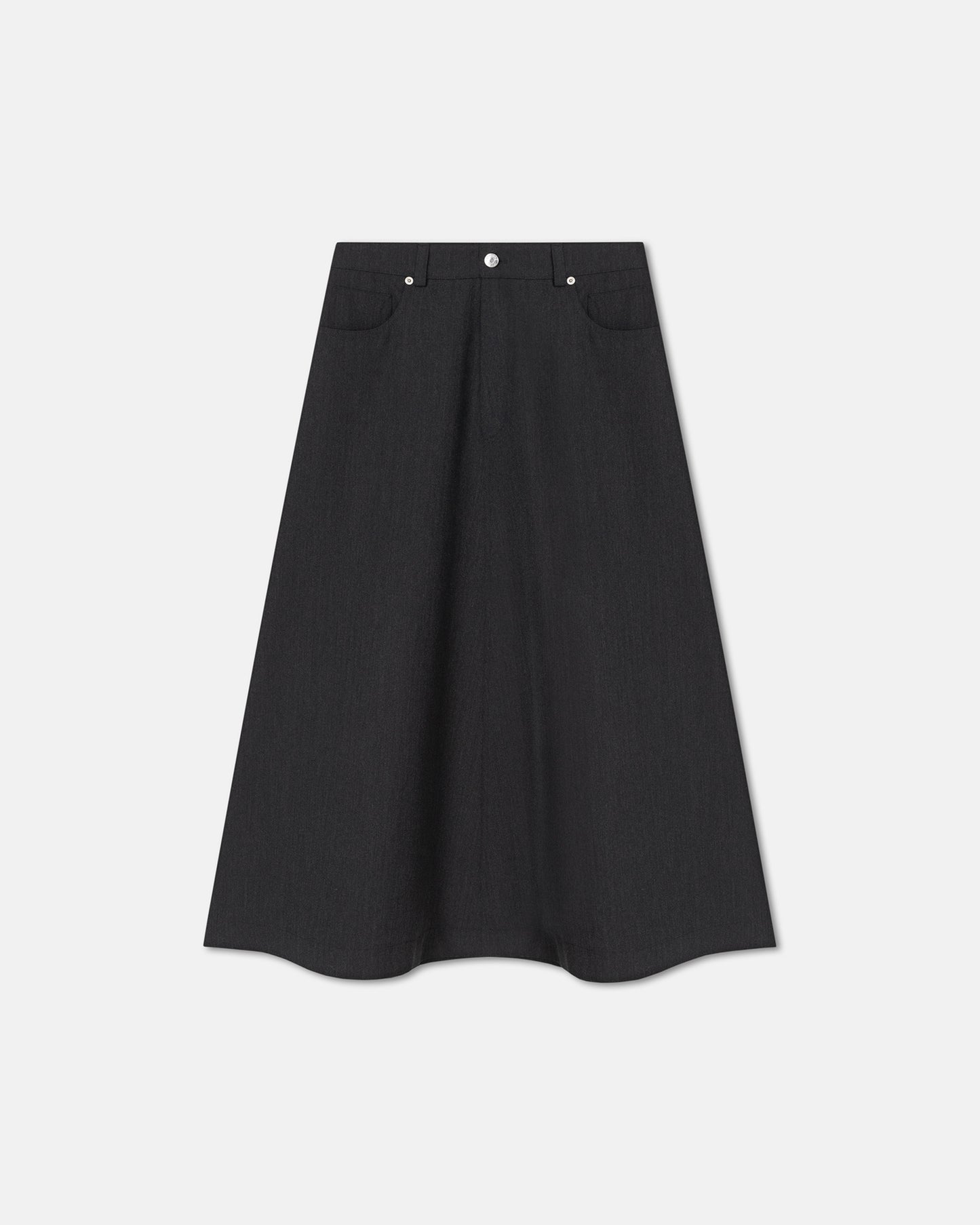 The Cintia skirt is made from wool twill to hold a classic A-line silhouette. Details are sparse to keep the focus on the volume – simply belt loops and a five-pocket design.