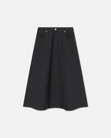The Cintia skirt is made from wool twill to hold a classic A-line silhouette. Details are sparse to keep the focus on the volume – simply belt loops and a five-pocket design.