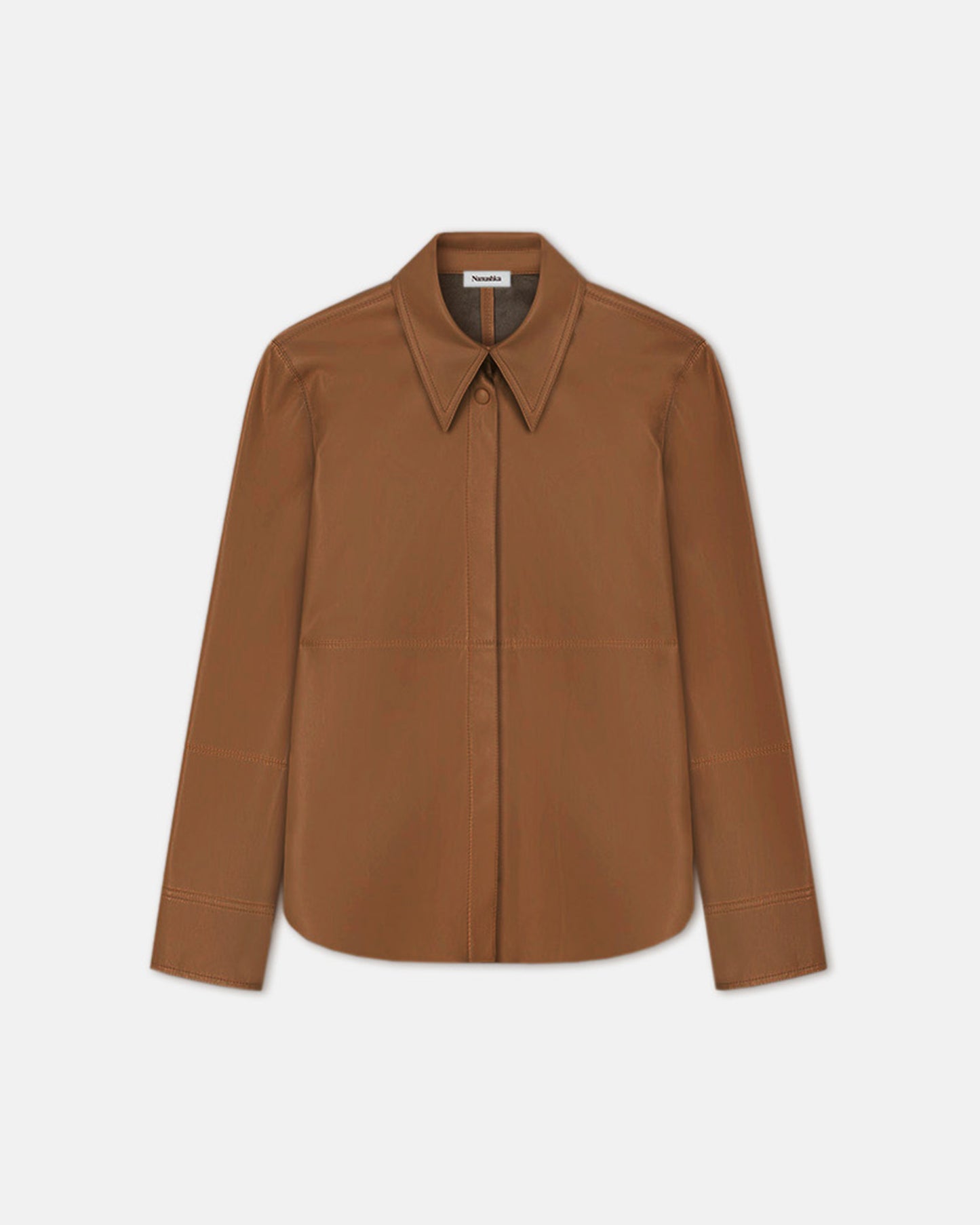 The Naum shirt is made from OKOBOR™ - an exclusive Nanushka fabrication. It's cut for a relaxed fit and is minimally detailed for a clean finish.
