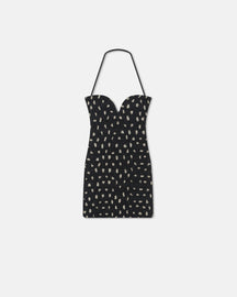 The Jannika dress demonstrates our innovative craft techniques with a new, textured fabrication. Made from polka-dotted seersucker tech chiffon, it has a halterneck sweetheart neckline that falls to a mid-thigh length.