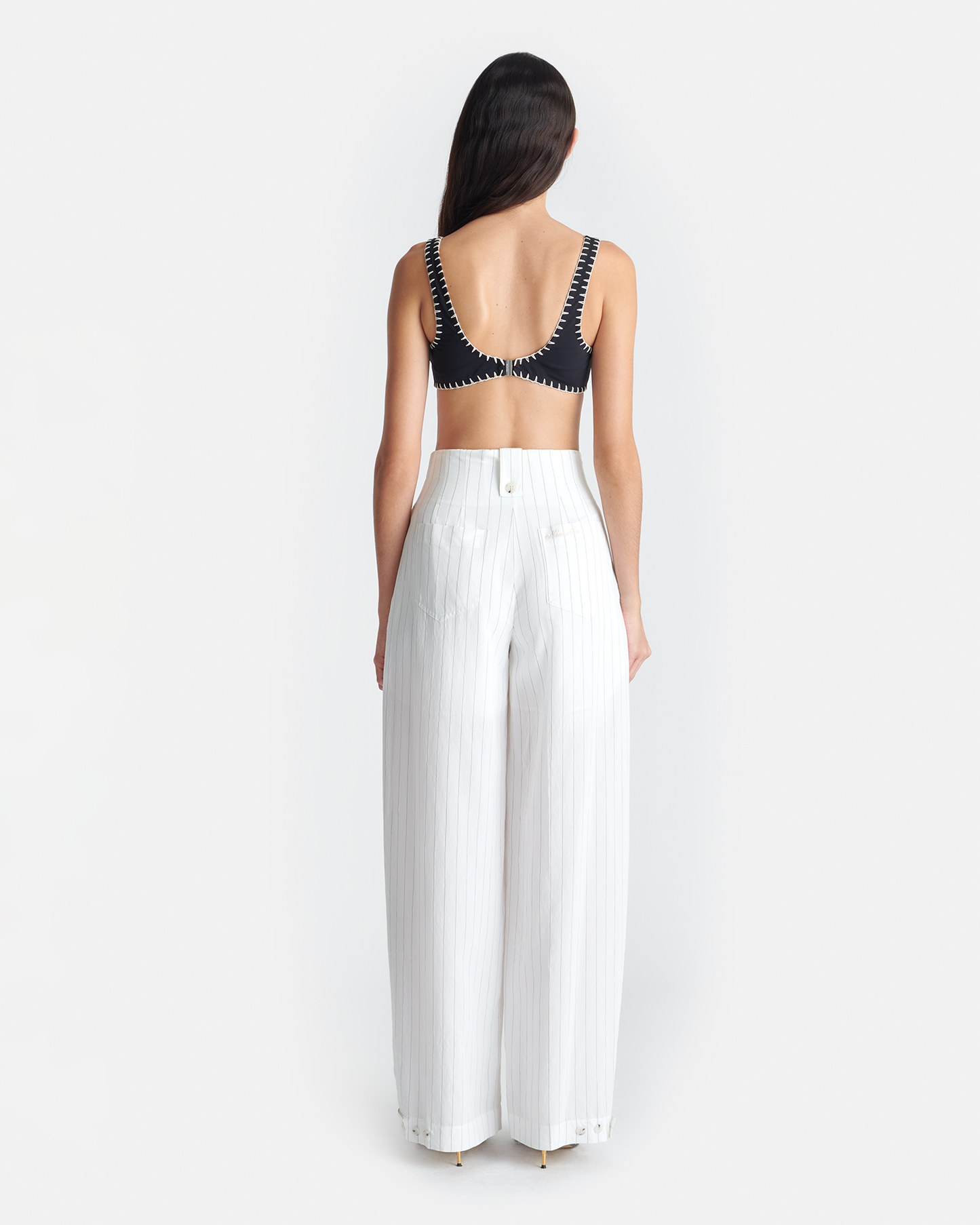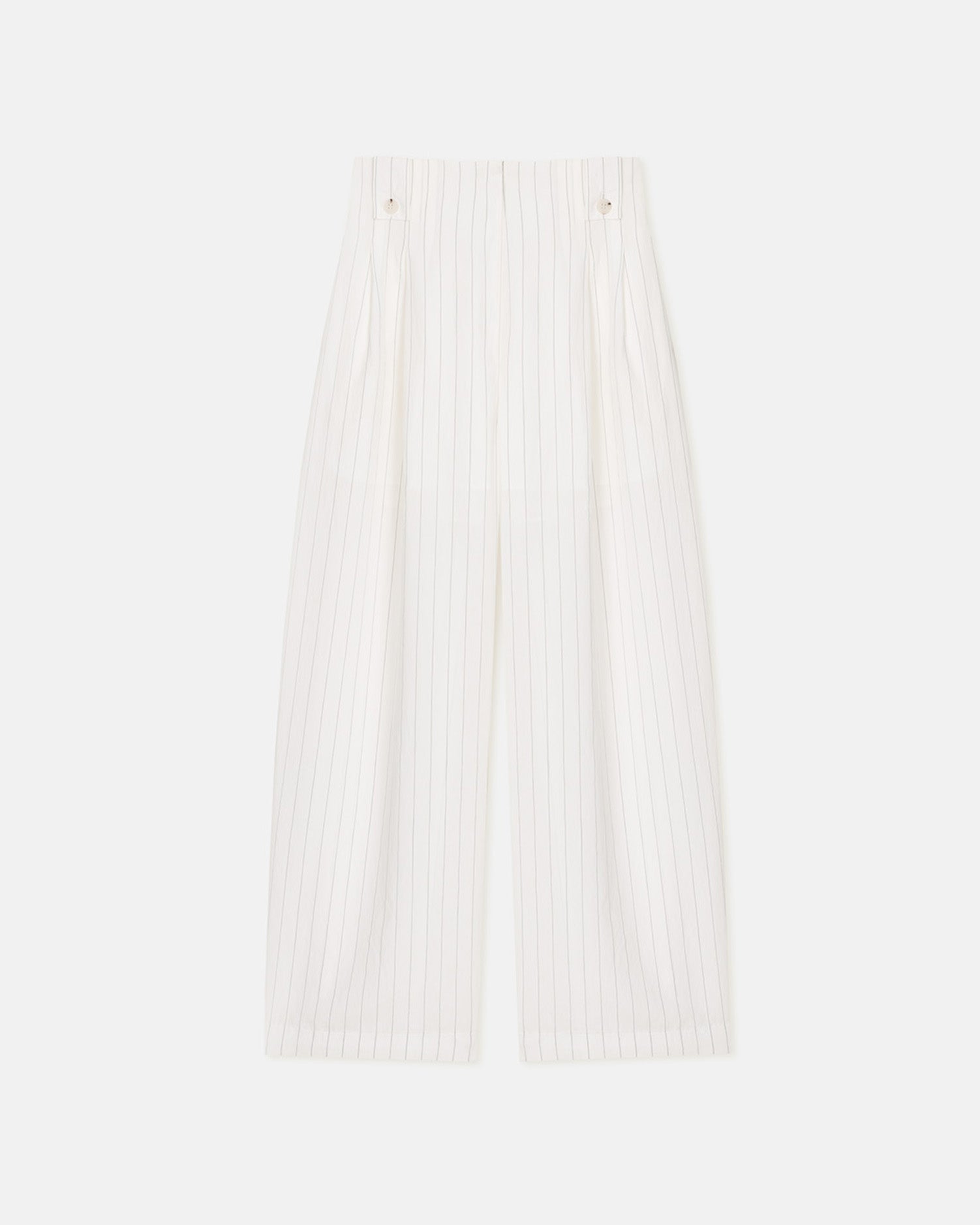 Proportion is one of the cornerstones of our brand ethos, demonstrated by the voluminous high-waist, wide-leg silhouette of the Jenci pants. They are crafted from a lightweight shirting fabric, and detailed with stripes and pleat for added definition.