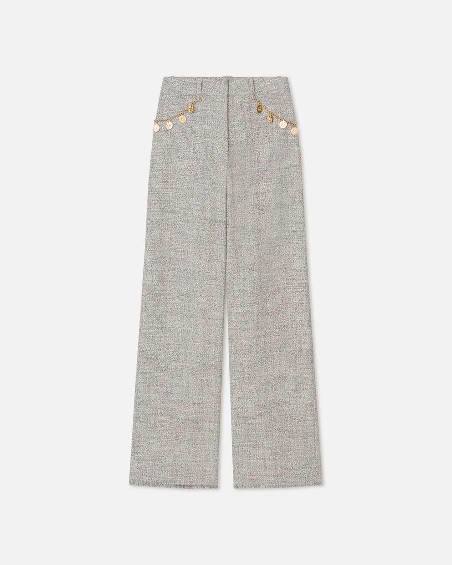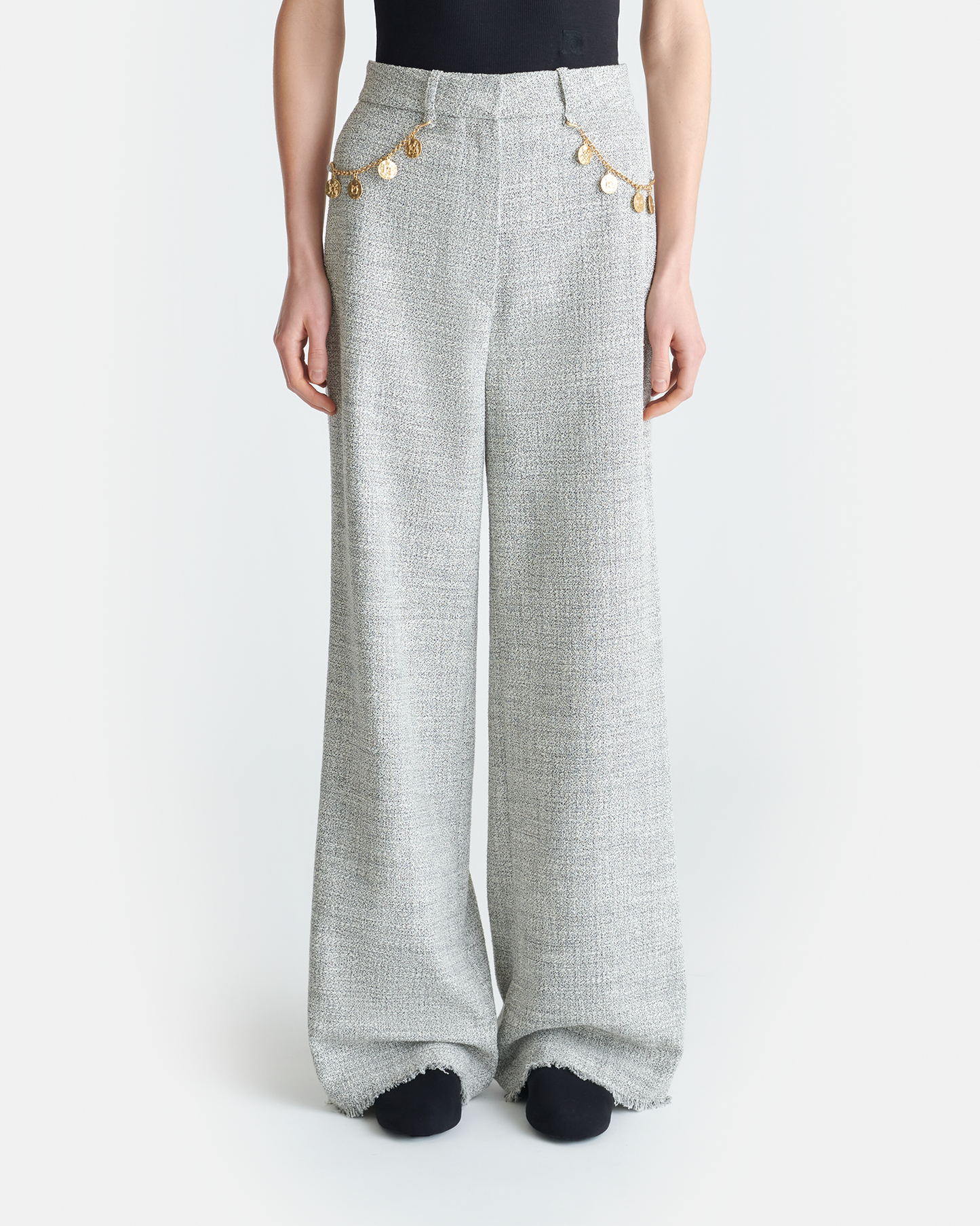 The Alandra pants are expertly tailored from mouliné tweed – a heritage fabric that feels fresh and modern thanks to the voluminous wide-leg silhouette it creates. The pockets are framed by our signature Kopjafa charms for added distinction.