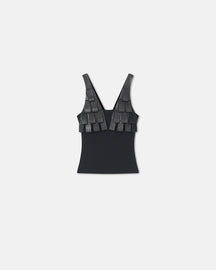 We’re inspired by the looped shapes created by paper for Spring/ Summer 2025. The Samila top is made from a soft ribbed jersey and is detailed with loops of fringing from our signature OKOBOR™ alt-leather.