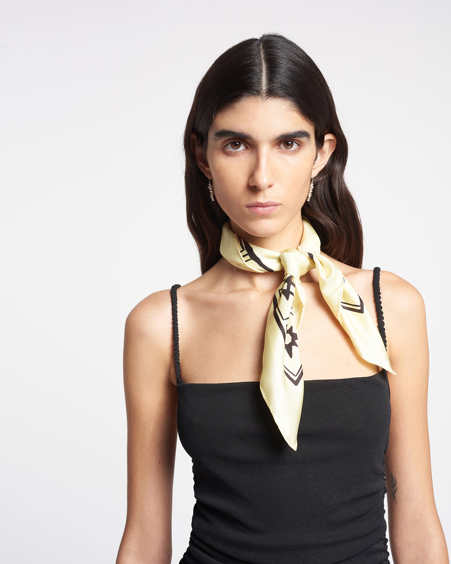 The Shoul scarf is decorated with our signature Kopjafa print. Made from lustrous silk, it can be styled as a headscarf or looped around the handle of a tote.